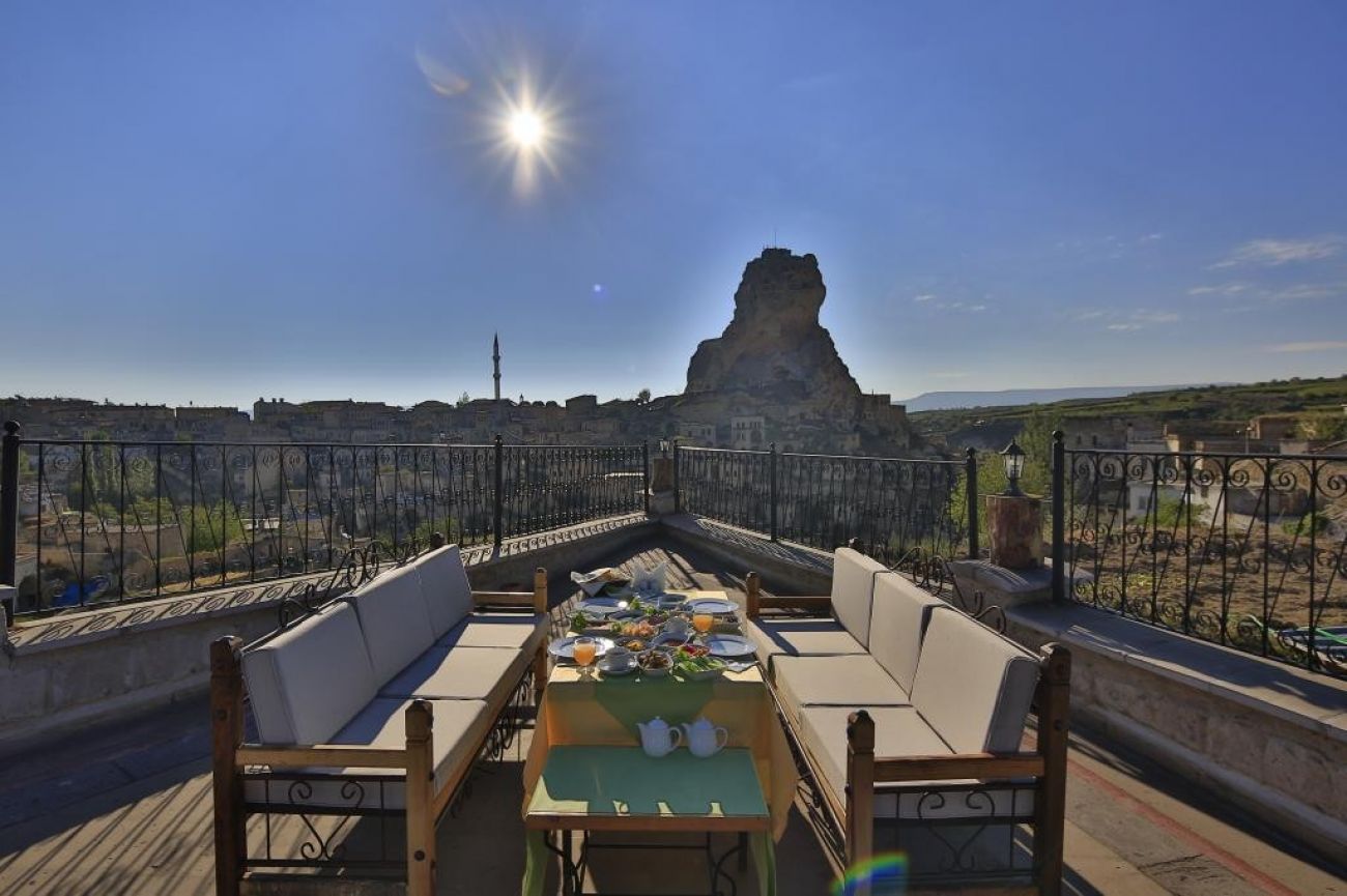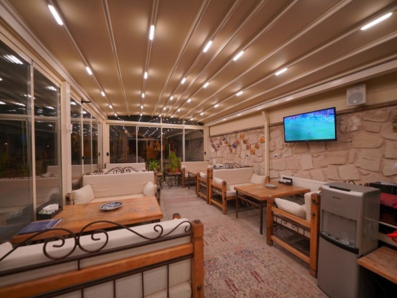 На територията на хотела: На разположение на гостите има консиерж услуги и ресторант и бар, открита тераса с площ от приблизително 800 м², която предлага най - красивата гледка в Ортахисар, денонощна рецепция, рум-сървиз и безплатен WiFi на цялата територия, частен паркинг, и общ салон
