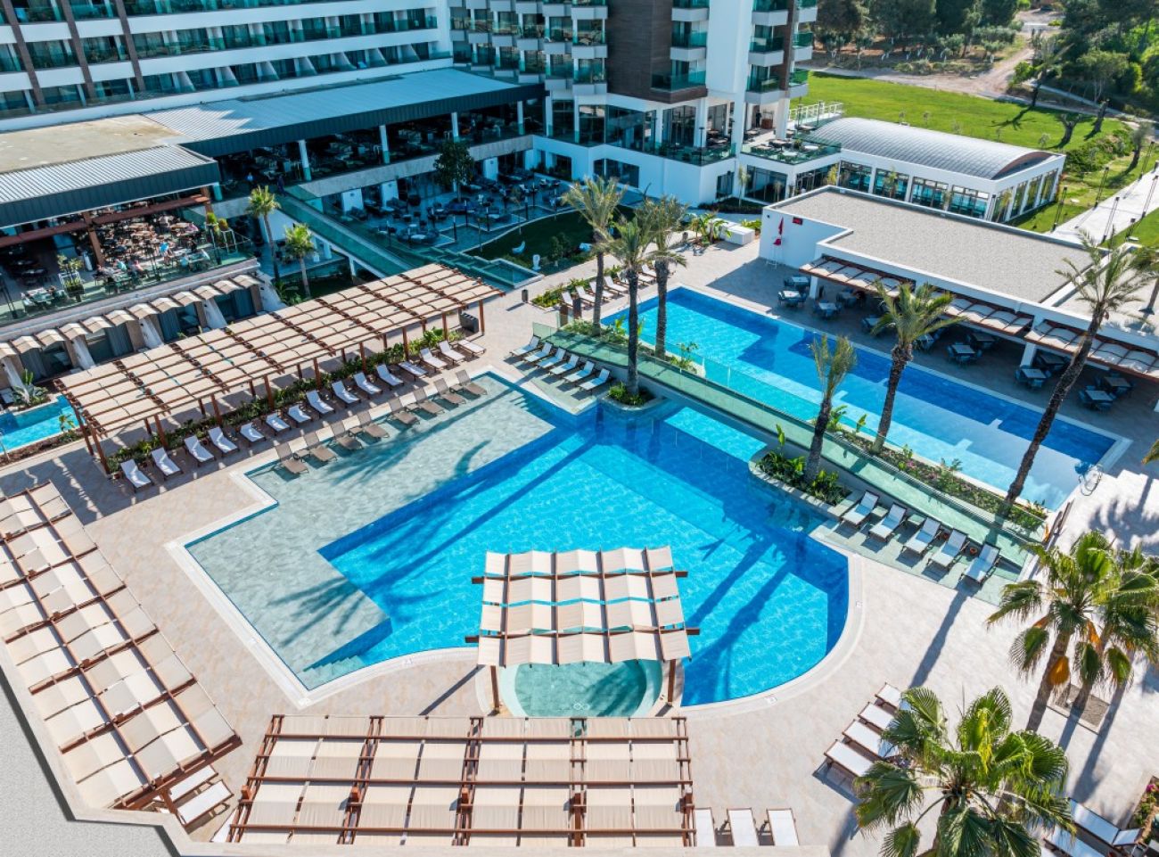 На територията на хотела: Основен ресторант, снек ресторант на плажа по меню, 3 бара, coffee house, ресторант за хамбургери и плодове, Roof bar - на покрива с жива музика, сладкарница, закрит (отопляем) и открит басейн, Спа-център, магазини, фризьорски салон, лекарски кабинет.