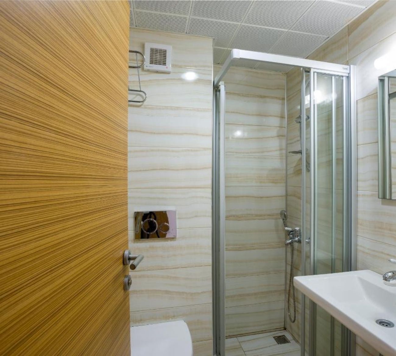 В стаите: хотелът разполага с 79 стаи: стандартни стаи ( 20 кв.м) - без балкон, суити ( 40 кв.м). На разположение на гостите на хотела в стаите има климатик, сешоар, ортопедични легла, Wifi, набор за приготвяне на чай/кафе, сейф, мини бар, душ кабина, тоалетни принадлежности. Стаите се почистват всеки ден, спалното бельо и кърпите се сменят 3 пъти в седмицата.