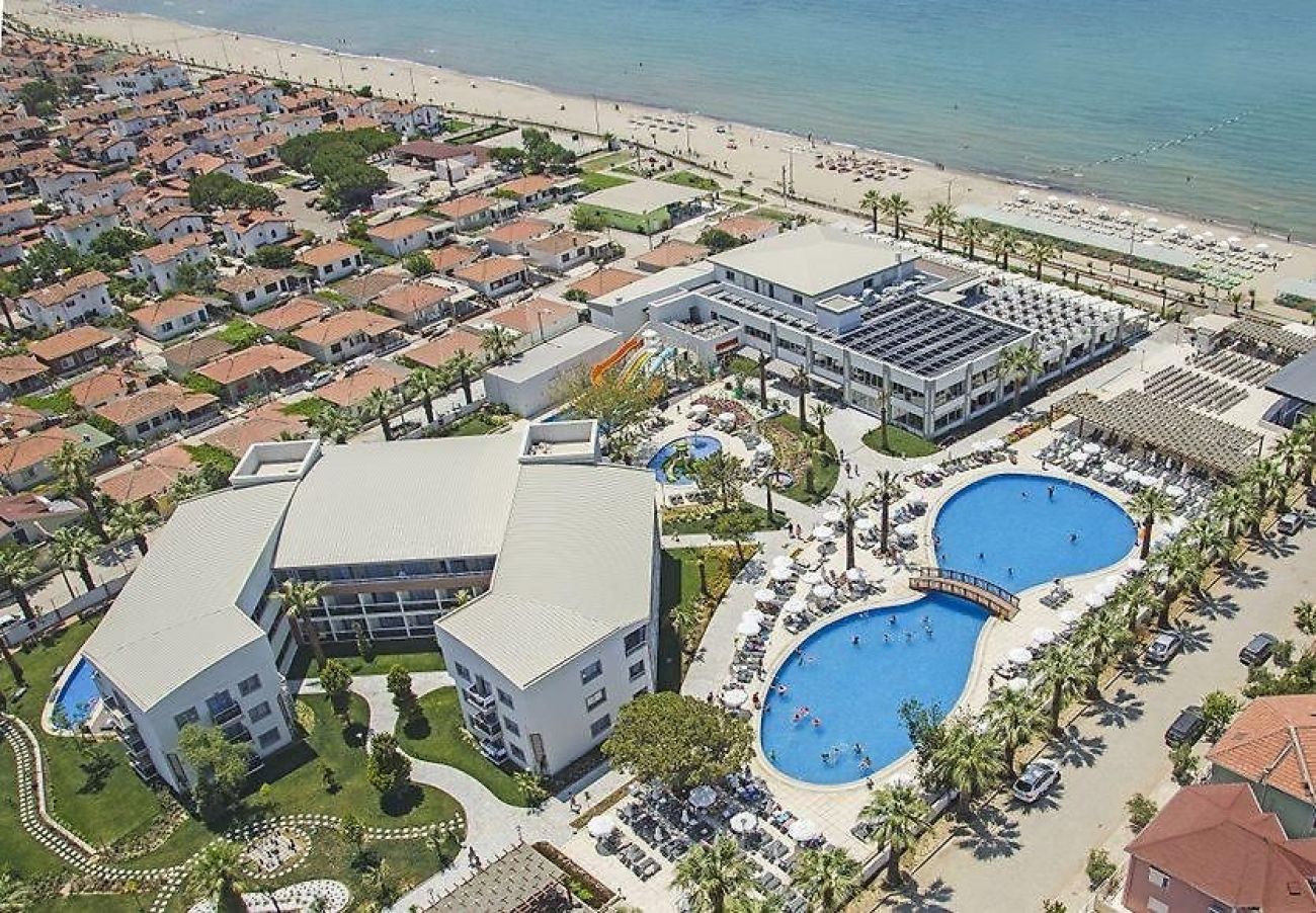Основен ресторант, открит басейн, детски басейн, водни пързалки, тенис на корт. анимационни програми и музика на живо в някои дни. Плажен волейбол, фитнес и спа център, Можете също така да се насладите на слънцето, пясъка и Егейско море на нашия плаж със син флаг, където ще прекарате незабравими моменти по време на почивката си.