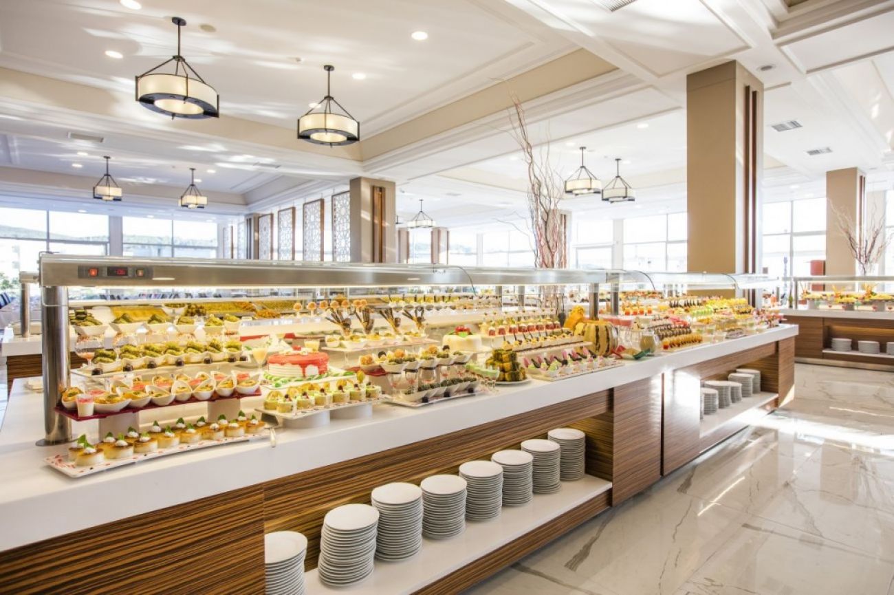 Хотелът работи на база All Inclusive, включваща закуска, обяд и вечеря на блок маса, междинни хранения и неограничена консумация на местни алкохолнии безалкохолни напитки, 24 часа в денонощието.