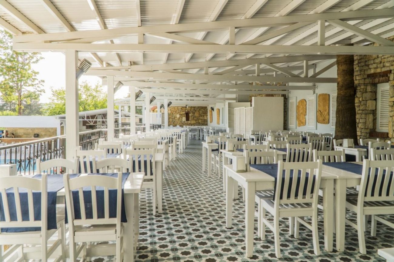 На територията на хотела Хотелът разполага с основен ресторант, а-ла-карт ресторант (едно безплатно посещение при престой от минимум 7 нощувки), 2 бара (при басейна, снек бар), 4 плувни басейна за възрастни и деца, водна пързалка, сейф (на рецепция, платен), Wi-Fi (в общи части), 24-часова рецепция.