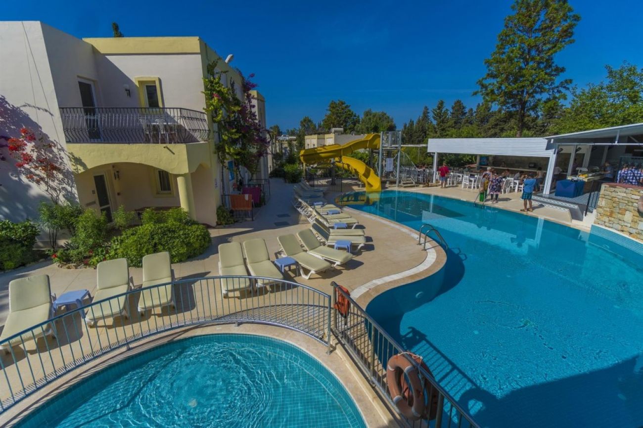 Paloma Family Club се намира в района Bitez на Бодрум, популярната дестинация за почивка в Егейско море, и посреща гостите си с концепция All-Inclusive.Заобиколен от мандаринови и маслинови дървета, можете да се насладите на морето на обществения плаж или да направите почивката си по-забавна на открития плувен басейн.Можете да подправите почивката си в ресторанта, който предлага изискани вкусове