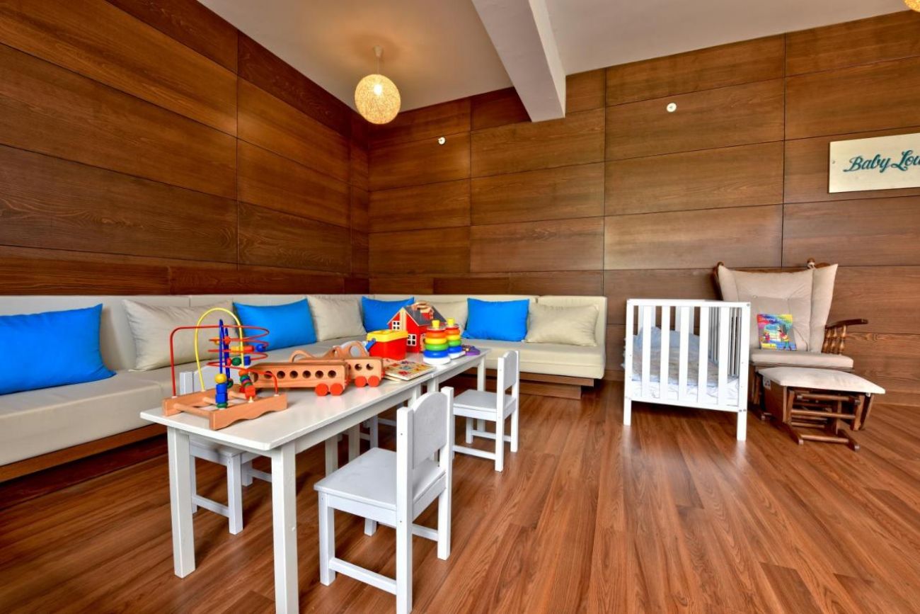 За децата: детска клубна програма в отделни възрастови групи, Teens Activities (13-17г.), Kids Club (3-6г) , (7-12 г.), Baby Club (0-36 месеца - (платено), детски басейни (3 външни и 1 вътрешен), 3 водни пързалки за деца, детски парк, бебешки столчета (основен ресторант) и др..