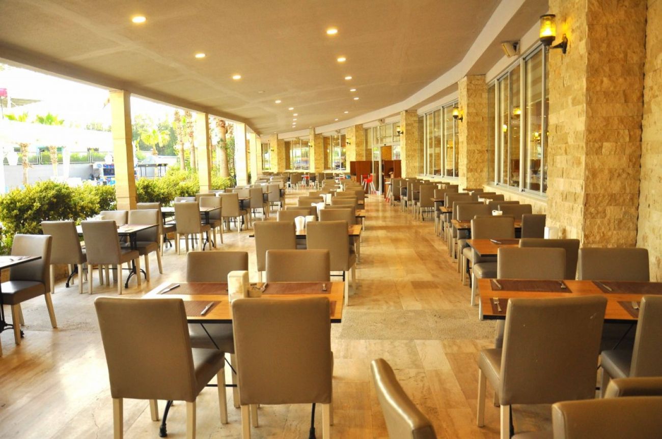 Оновен ресторант, 1 а-ла-карт ресторанта (интернационален, с предварителна резервация, при минимален престой 7 нощувки), лоби бар, сладкарница, бар на плажа, открит и закрит басейн, 6 водни пързалки*, СПА център.