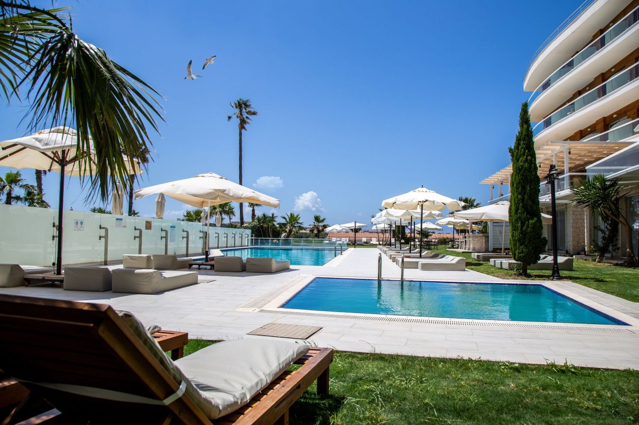 Хотелът разполага с 70 стаи в една основна сграда, от които 17 Standart room sea view king bed (25 м²), 2 Standart room garden view king bed (25м²), 48 Deluxe room sea view (28 м²), 3 Junior suite sea view king bed (30 м²). Всички са оборудвани с климатик, телевизор, телефон,баня с душ, балкон. Почистване на стаите всеки ден, смяна на спалното бельо и кърпите - 2 пъти в седмицата.