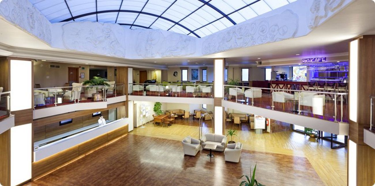 Хотелът разполага с основен ресторант, диетично меню, вегетарианско меню, 3 ресторанта a la carte (рибен, егейски, италиански – с предварително записване , за 1 седмица престой посещението на всеки ресторант по веднъж е безплатно), 6 бара, открит басейн, закрит басейн, лекар, фризьорски салон, магазини, пералня, 5 конферентни -зали (за 40–400 чов.)