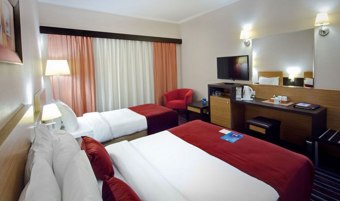 баня с вана, централен климатик в основните сгради, индивидуален климатик в клубната част, телефон, телевизор, мини бар ( срещу заплащане ), сейф в стаите (срещу заплащане), room service 24 часа ( срещу заплащане ), сешоар, балкон (20 стаи в клубната част са без балкон), почистване на стаите - всеки ден, смяна на бельото - 2 пъти в седмицата