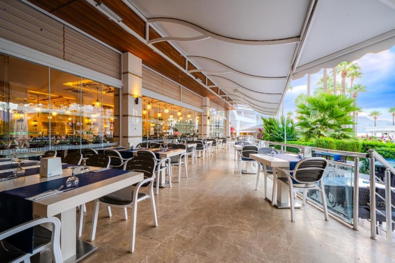Разположение: Хотелът е разположен на 140 км. от летище Милас, на 99км от летище Даламан, на 2.5 км. от центъра на Мармарис на брега на морето. Напълно реновиран през 2011 г. с обща площ от 20 000 m².