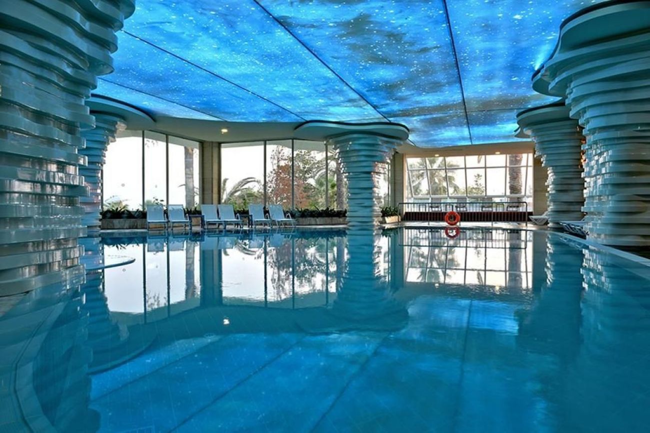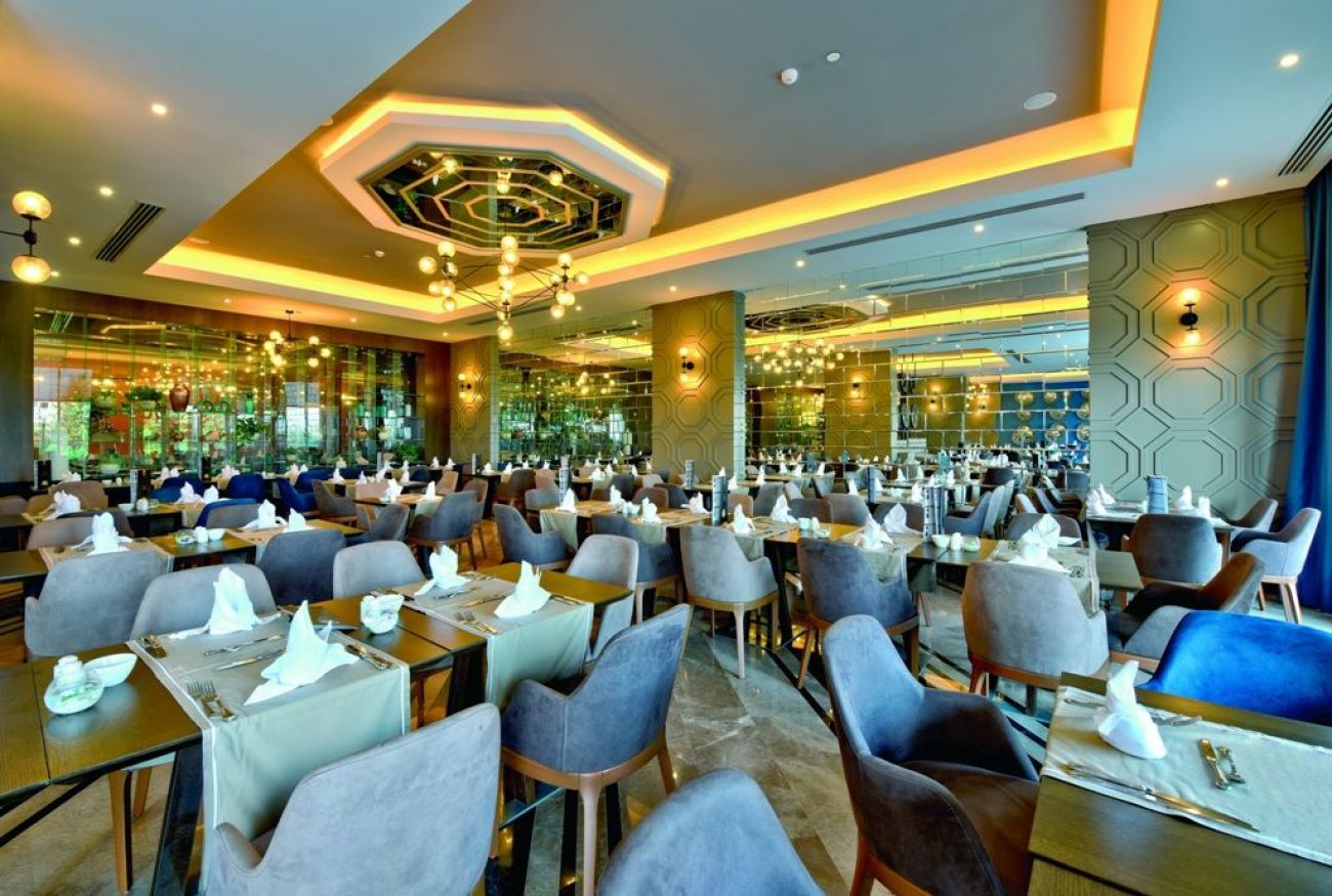 основен ресторант, диетична храна, вегетарианска храна, 3 а la carte ресторанта (турски (в зависимост от атмосферните условия), китайски, италиански, с резервация, 1 безплатно посещение на един от ресторантите през периода на престой в хотела валидно само при минимум 7 нощувки, при по-малко нощувки се заплаща), 8 бара (един от тях работи 24 часа), открит басейн,закрит басейн, водни пързалки (в определени часове), лекарски кабинет, фризьорски салон, магазини, пералня, химическо чистене