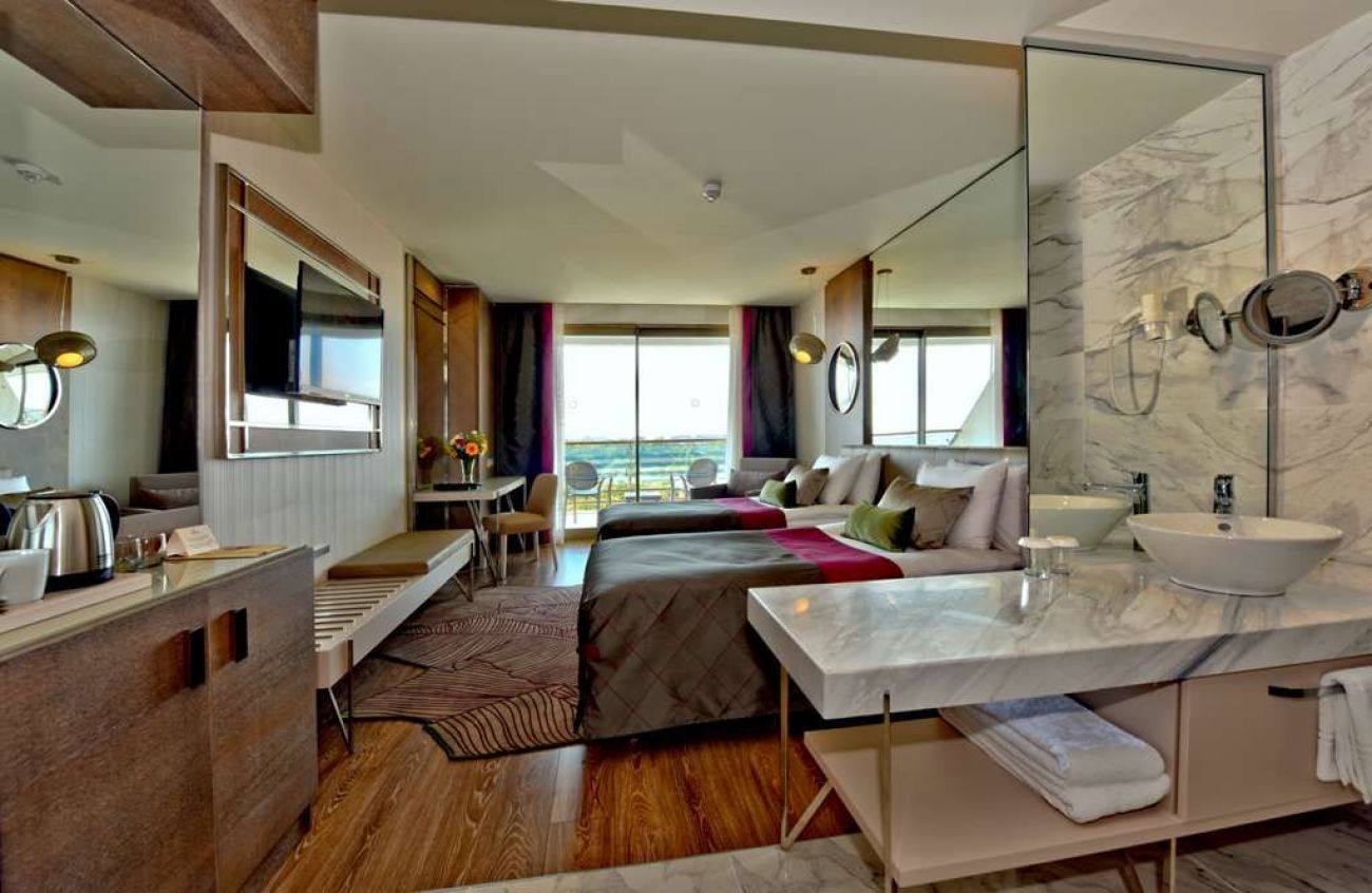 баня с вана, сешоар, централен климатик (работи в определени часове, в зависимост от атмосферните условия), телевизор, телефон, мини-бар (безалкохолни напитки зарежда се ежедневно, безплатно), сейф (безплатно), под мокет, балкон, почистване на стаята ежедневно, смяна на спално бельо 3 пъти в седмицата, room service (от 06:00 до 00:00 - платено; 00:00 до 06:00 - безплатно)