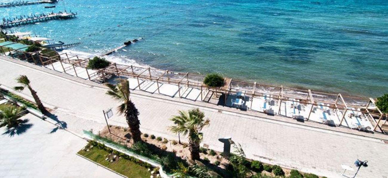 Предлагащ частен плаж на брега на областта Бахчелиевлер в Тургутрейс