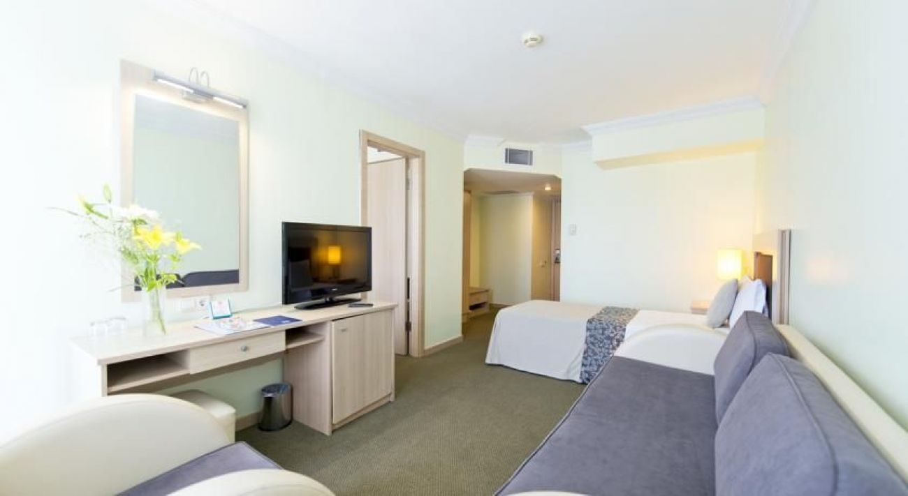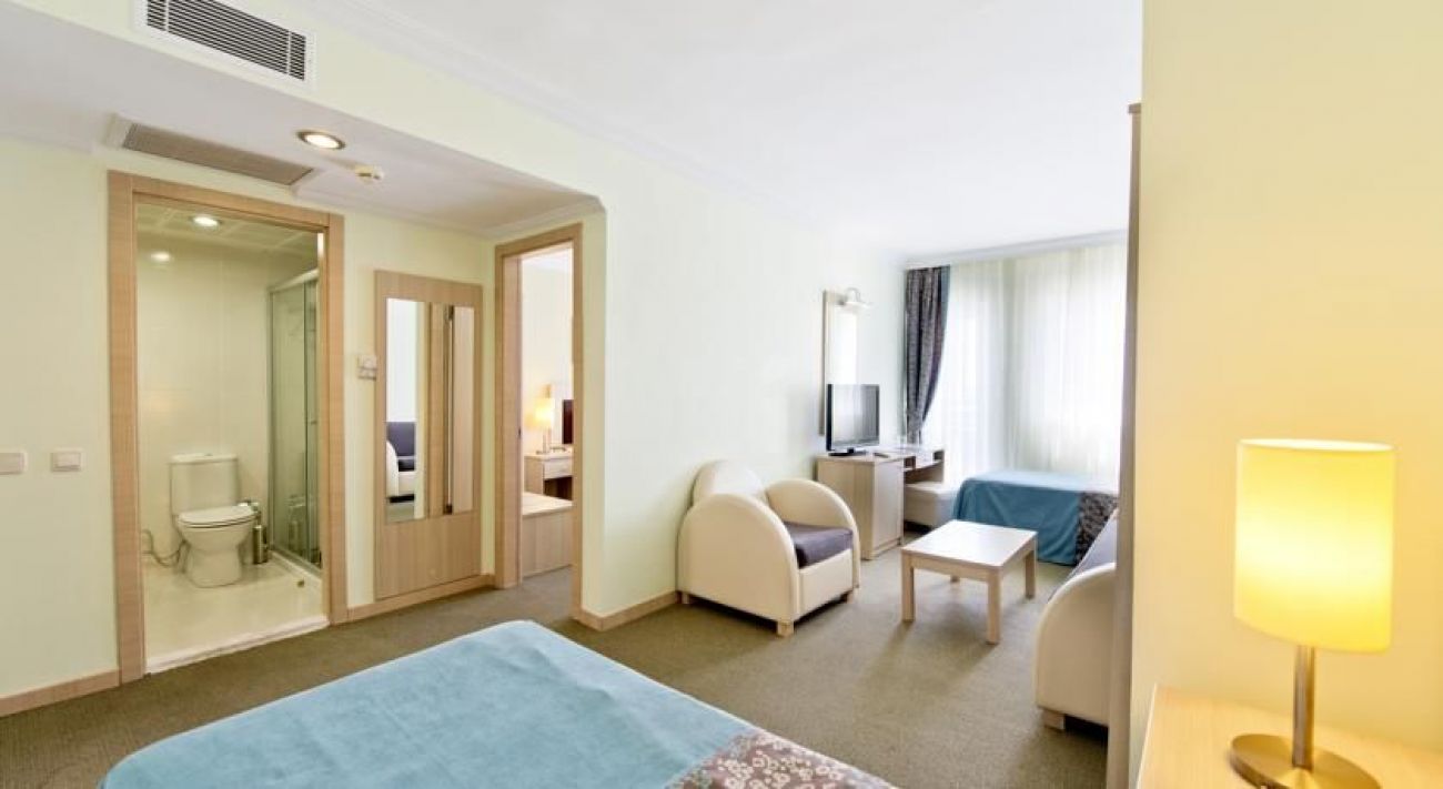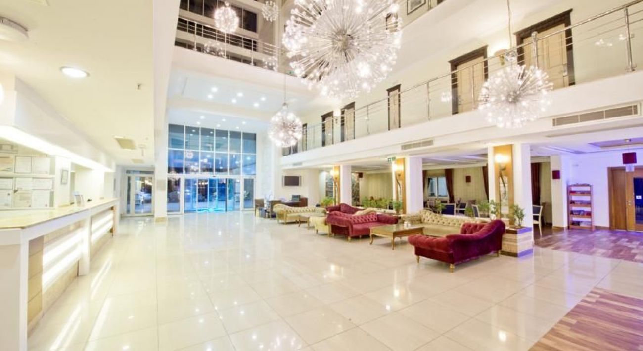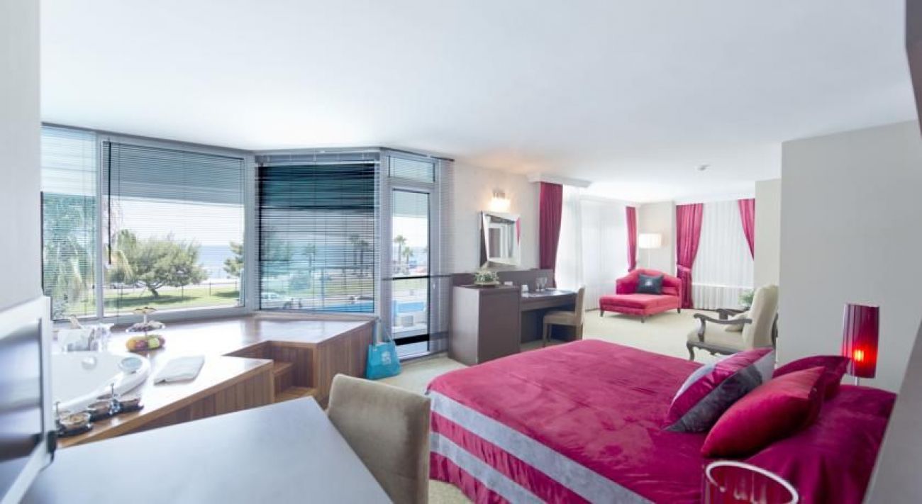 Хотелът е разположен на 25 км от летището, на 5 км от центъра на Анталия, на 30 м през пътя от собствения си плаж (през тунел).
