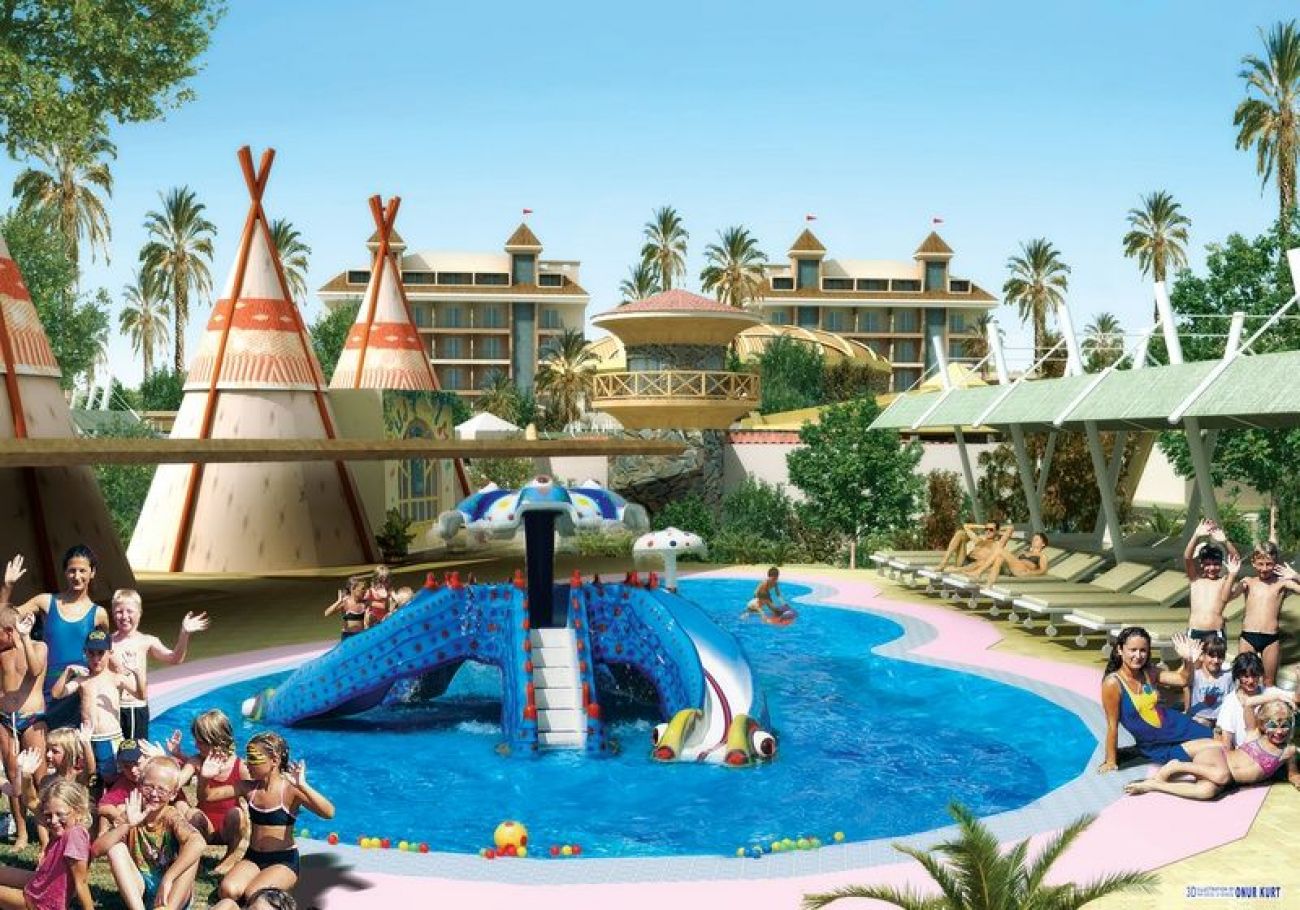За децата: детски басейн, водни пързалки, мини клуб за деца ( 4-12г.), младежки клуб( 14-16г.), детегледачка ( платено ), детско меню в ресторантите, детско столче за хранене, детска площадка, развлекателни програми.