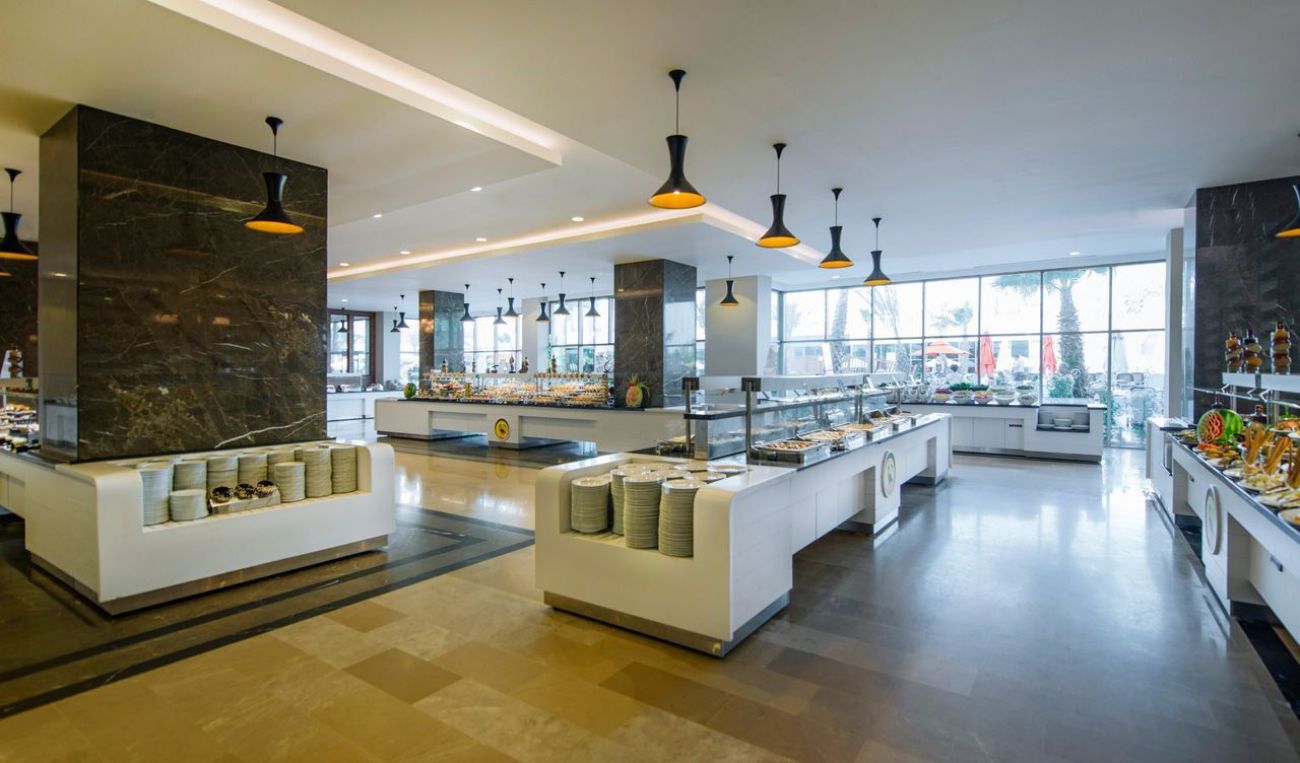 основен ресторант, диетично и вегетарианско меню, 5 а-ла-карт ресторанта(източна кухня, италиански, рибен, барбекю, османски: с предварителна резервация – срещу заплащане), 8 бара(един денонощен), 3 открити басейна, полуолимпийки закрит басейн, 18 водни пързалки (6 за възрастни и 12 за деца), кинозала, лекарски кабинет, СПА център, магазини, пералня и химическо чистене, 4 конферентни зали (за 70 - 1100 човека), безжичен интернет (на територията на хотела, безплатно), интернет кафе (срещу заплащане)