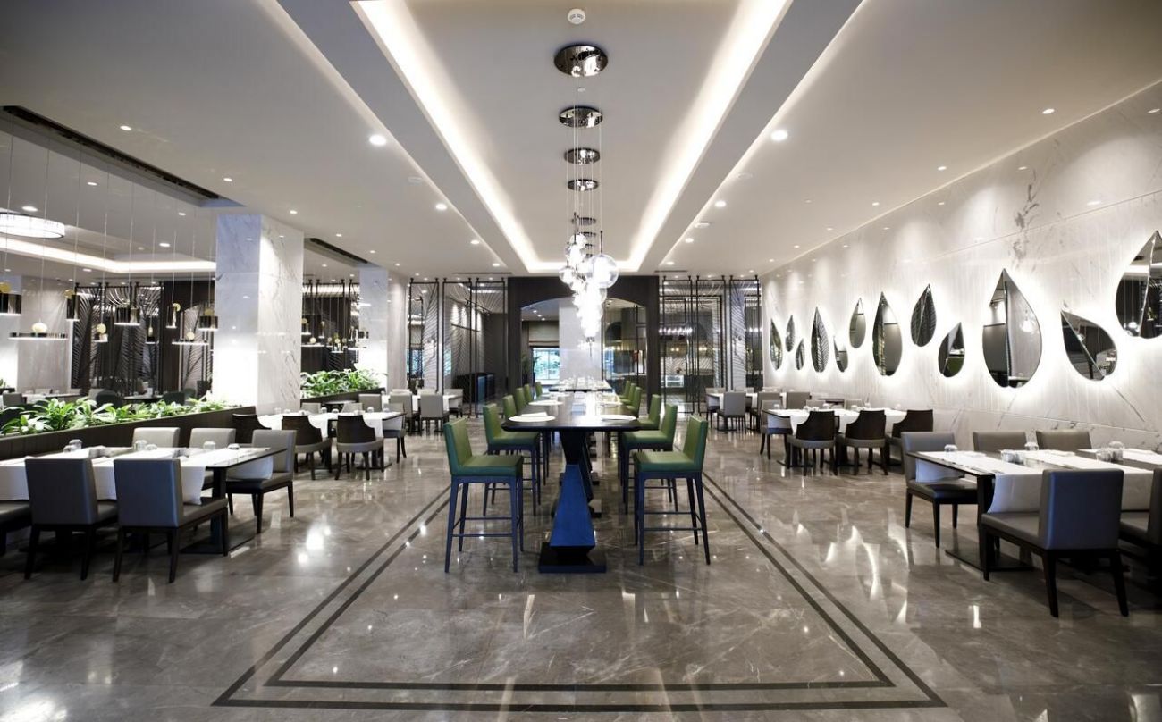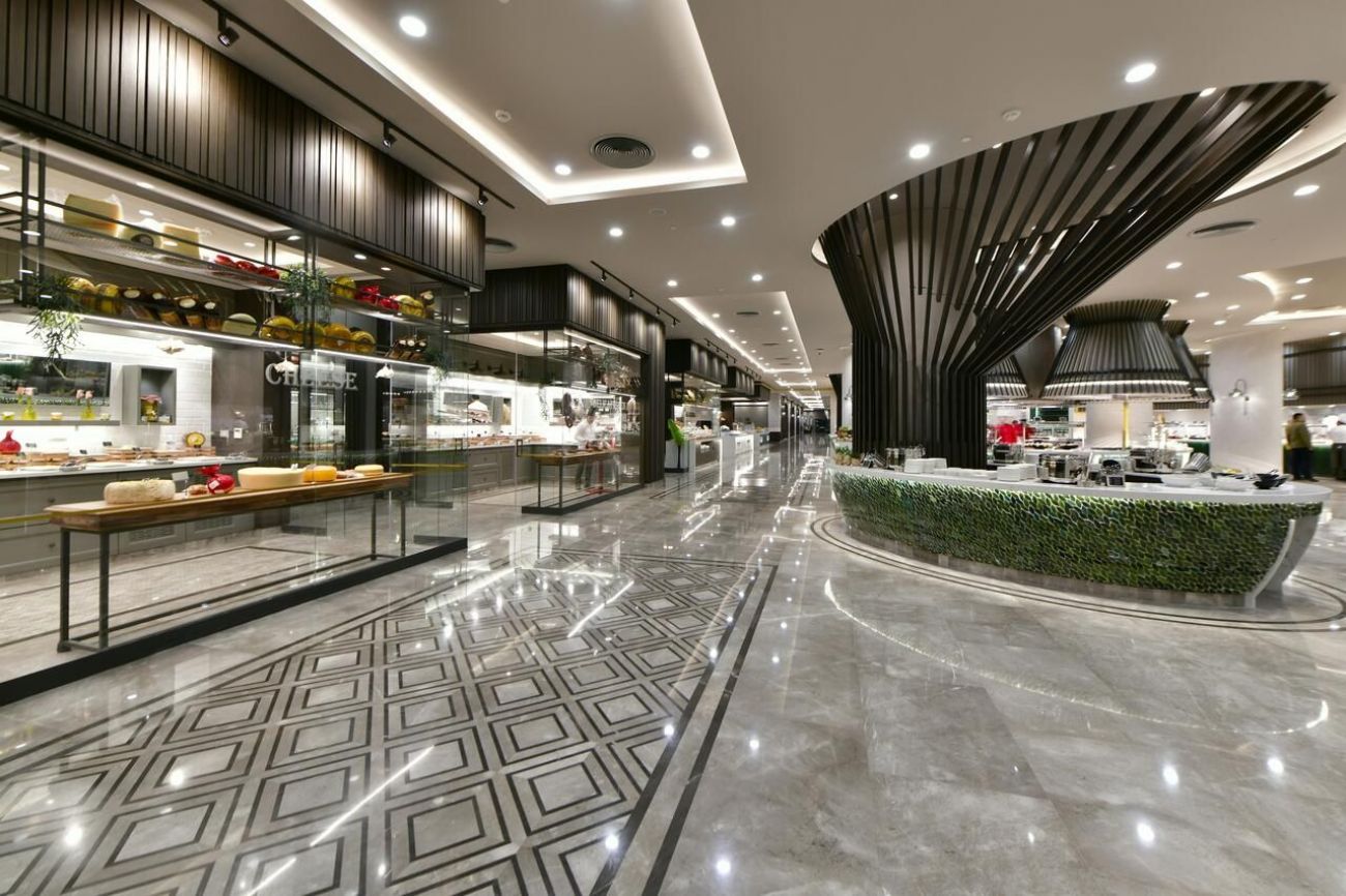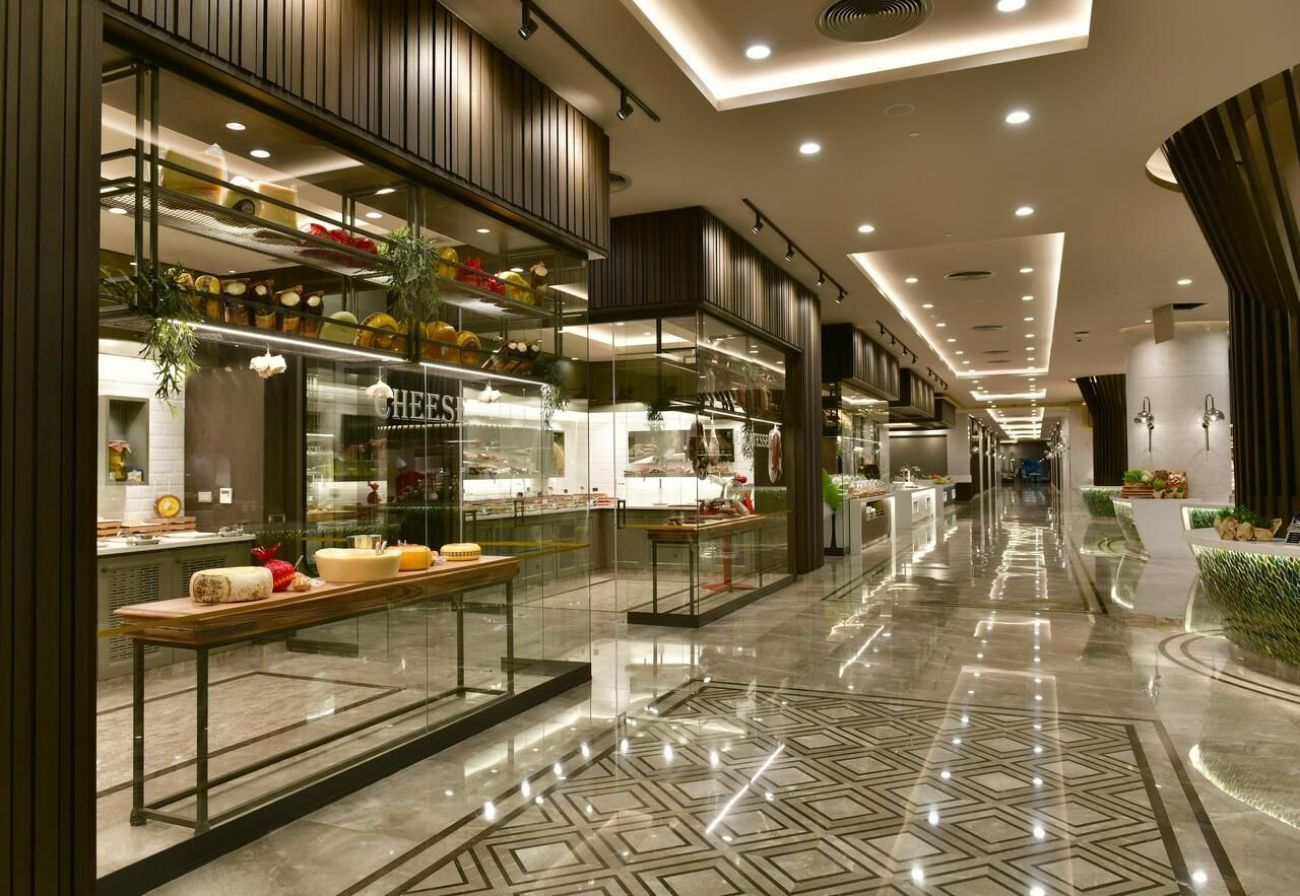 2 ресторанта (единия от тях е за гости над 15 год.), 4 ресторанта a-la-carte (турски, италиански, далекоизточен, рибен, с предварителна резервация, резервацията се заплаща)