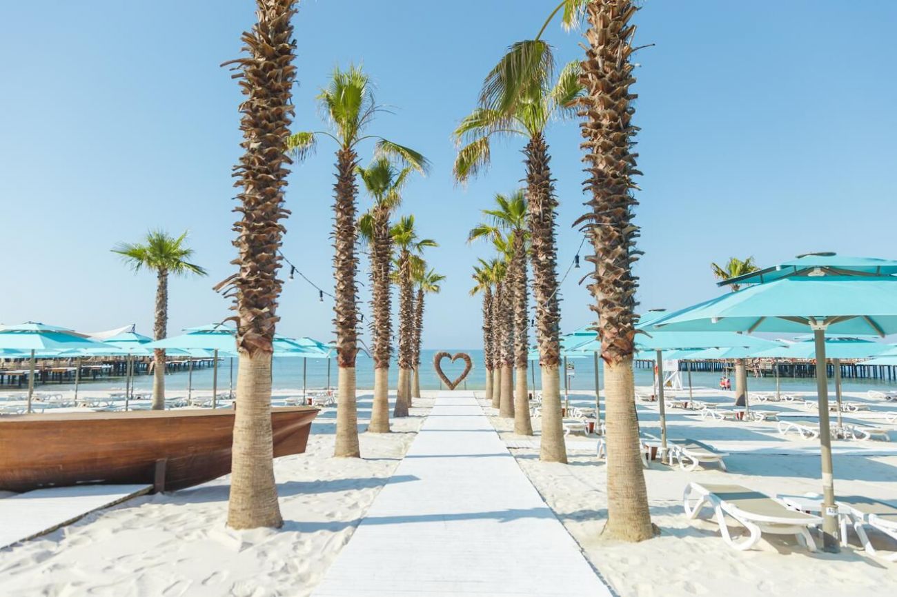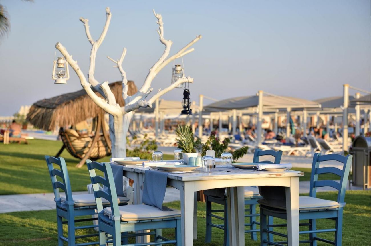 Собствен, бял пясък. Бар на плажа: безплатно. На плажа: чадъри, шезлонги, матраци, кърпи - безплатно, шатри - платено. На басейна: чадъри, шезлонги, матраци - безплатно.