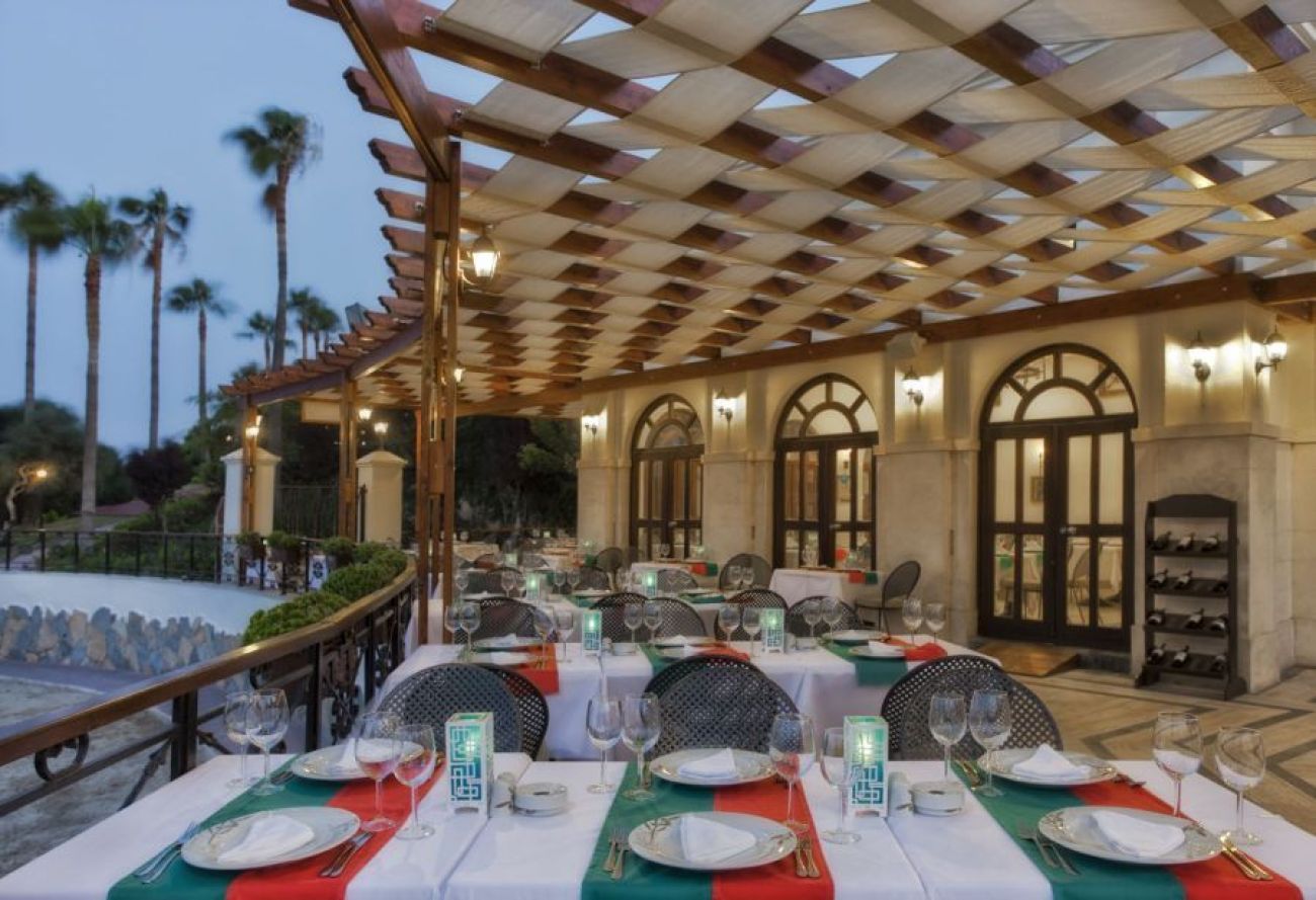 Хотелът разполага с а-ла-карте ресторанти: турски ресторант, италиански ресторант, Средиземно морски ресторант и барбекю ресторант (заплаща се допълнително, изисква предварителна резервация); Основен ресторант, който предлага закуска, обяд, вечеря и две късни хранения.