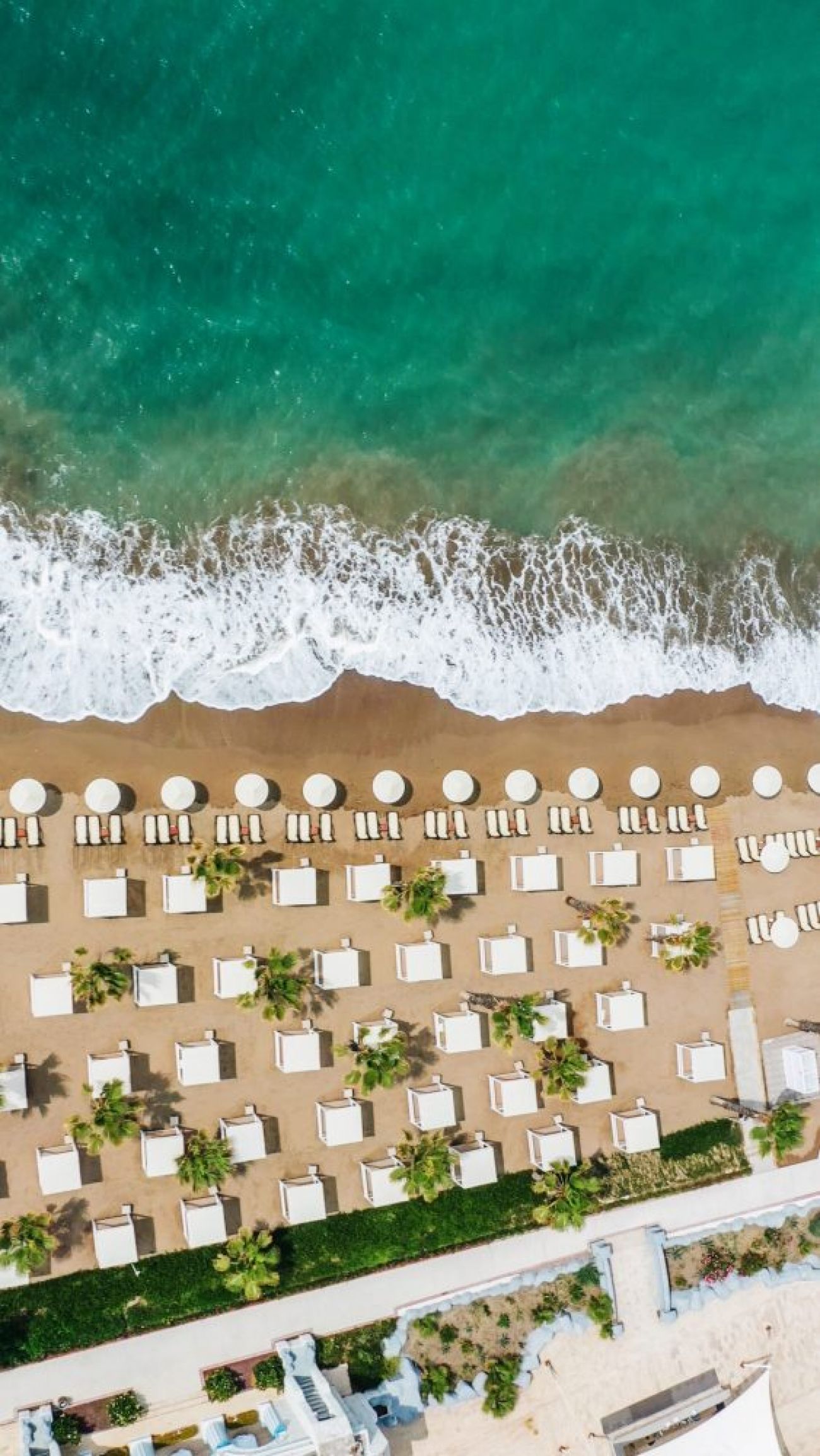 Собствен, пясъчен с дължина 400 м. Чадъри и шезлонги на плажа и при басейна – безплатно.