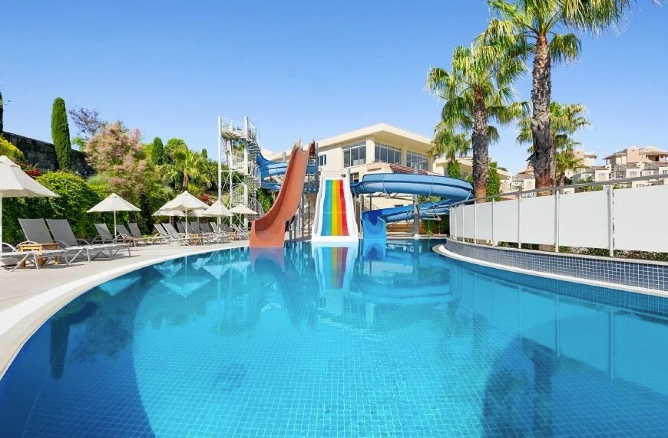 За децата: 3 детски басейна, водни пързалки, детска площадка, мини клуб, мини диско.