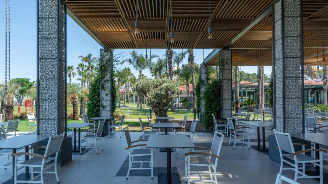 Основен ресторант, 2 а-ла-карт ресторанта (рибен и турски - срещу заплащане, с предварителна резервация), сладкарница, 5 бара, снек бар, 4 открити басейнa, аквапарк, СПА център, дискотека, магазини, конферентнa залa, паркинг.