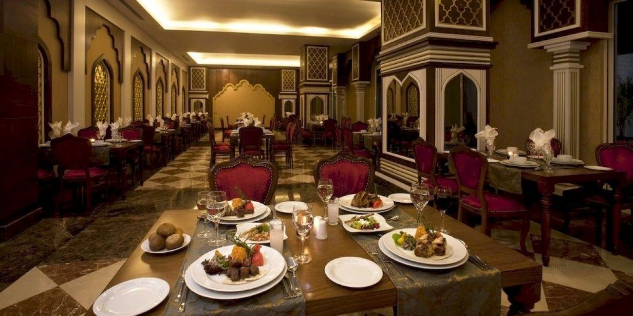 основен ресторант, 3 ресторанта a-la-carte (турски, далекоизточен, италиански - с предварителна резервация, за едноседмичен престой по едно безплатно посещение на всеки ресторант), 7 бара, 2 открити басейна, закрит басейн, 4 водни пързалки, лекар на повикване, SPA-център, фризьорски салон, търговска част, пералня, 3 конферентни зали (за 70-950 чов.)