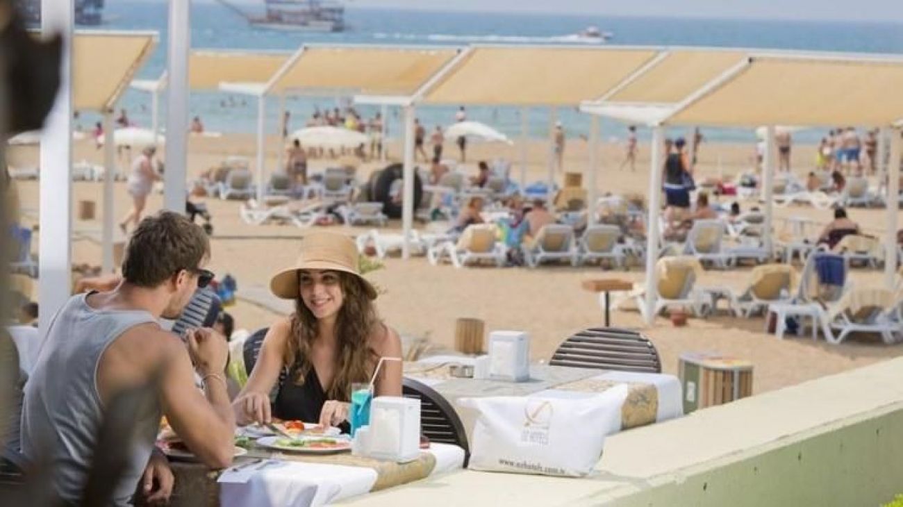 Собствен, пясък. Бар на плажа: безплатно. На басейна и на плажа: чадъри, шезлонги, матраци - безплатно. Плажни кърпи безплатно.