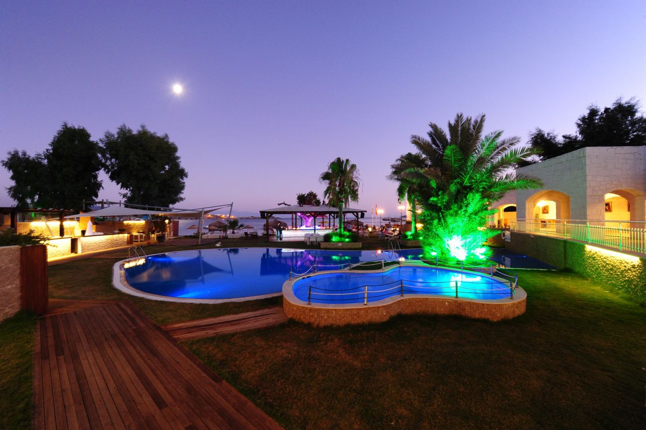 Намира се на 37 км от летище Бодрум, на 3 км от центъра на Бодрум, на 1 км от центъра на Гюмбет, на брега на морето. Построен 2005 г., на обща площ от 5 500 м².