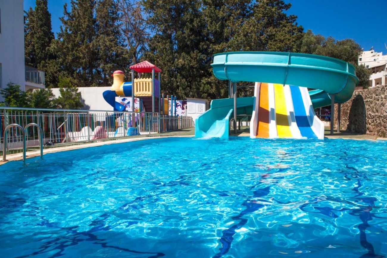 Основен ресторант, 1 бар, 2 открити басейнa, 2 водни пързалки, СПА център, магазини.