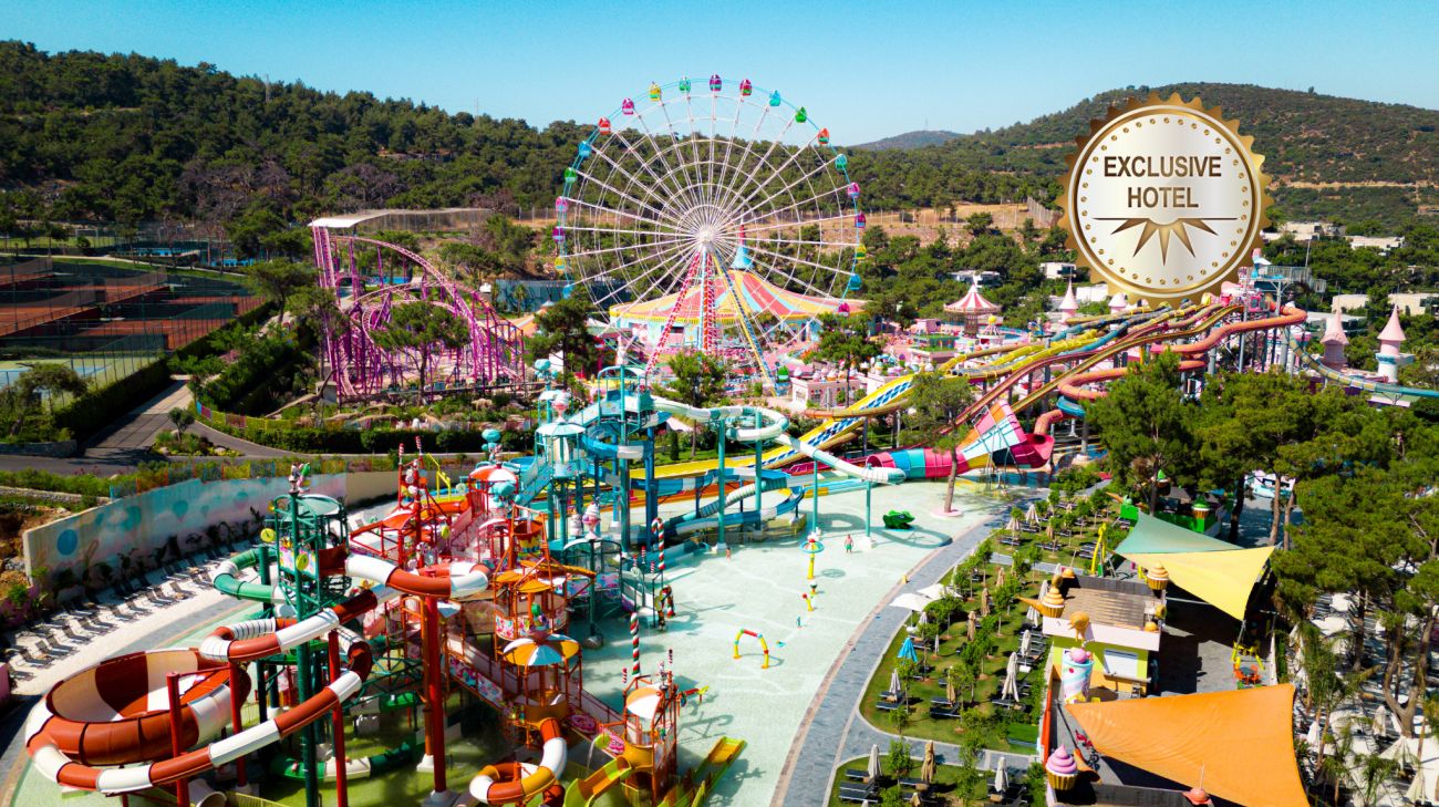 CANDYTOWN LUNA PARK е мястото за неверятно забавления по време на Вашия престой. Паркът представлява комплекс от различни забавления за всички възрасти. Разбира се, не трябва да пропускат и Лунапарка с 9 различни атракции включително виенско колело високо 17 метра, както и детска въртележка, картинг, лабиринт с лазер игри, детско влакче на ужасите и 8D кино. Има мини клуб за деца между 4 и 7 годишна възраст, който може да предложи на малките посетители детски фитнес, арт занимания, мини диско, игрална площадка, детска йога и безброй други забавления. За малко по-големите (на възраст между 8 и 12 години) в макси клуб се предлага търсене на съкровища, оригами, баскетбол, волейбол, водно поло, сумо игри, рали, футбол и още други. Тийнейджърите в хотела могат да посетят предвидения за тях клуб, в който играят тенис на маса, футбол, дартс, търсене на съкровища, игрална зала (playstation 5 и компютърни игри), бинго, баскетбол, кино, уроци и много други. Дино парк с 12 динозаври в реални размери. Най-новите атракциони са тематичния парк Candyland и виенското колело. Работно време в периода 01.05-15.10 от 20.00 до 23:00 (може да варират спрямо метеорологичните условия).