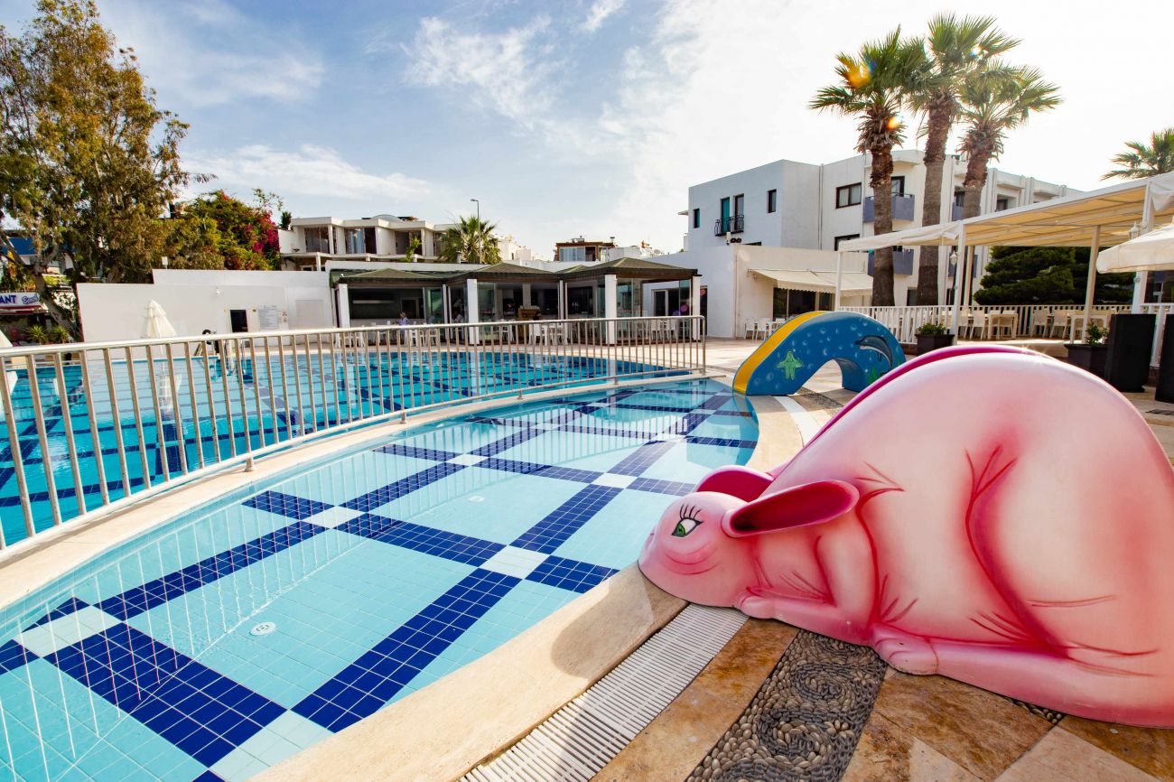Намира се на 53 км от летище Бодрум, на 18 км от центъра на Бодрум, на центъра на Тургутрейс, на брега на морето. Построен 1990 г., на обща площ от 6.000 м². Реновиран 2025 г.