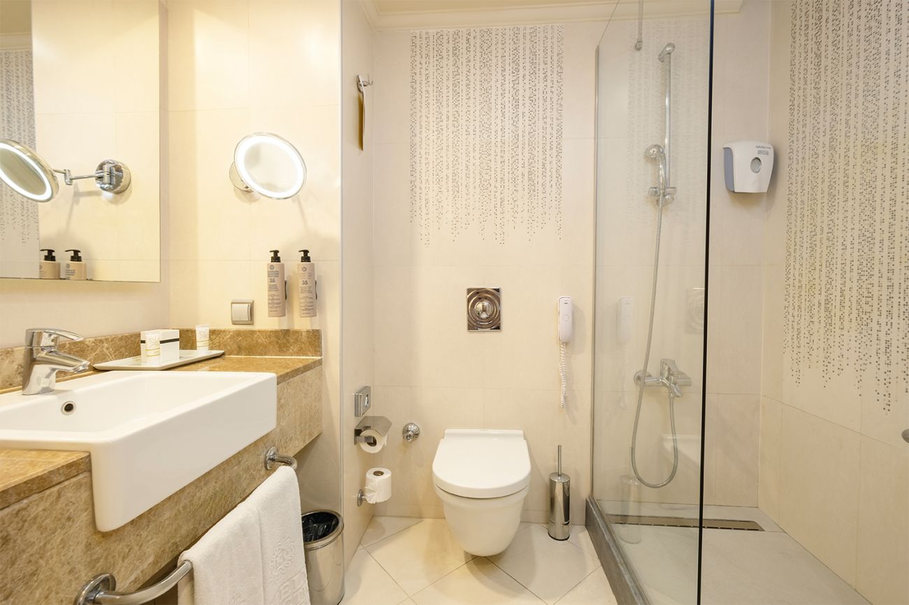 Състои се от 6-етажна основна сграда, отделен корпус Beach House и четири отделни 4-етажни корпуса Terrace House, разположени в близост до релакс-басейна (Terrace сградите са без асансьор). Всички стаи са оборудвани с вана,сешоар, индивидуален климатик, телевизор, телефон, мини-бар (безалкохолни напитки и бира се зареждат ежедневно), безплатно, сейф (безплатно), подова настилка – теракот, балкон, ежедневно почистване на стаята, смяна на спалното бельо – 2 пъти седмично