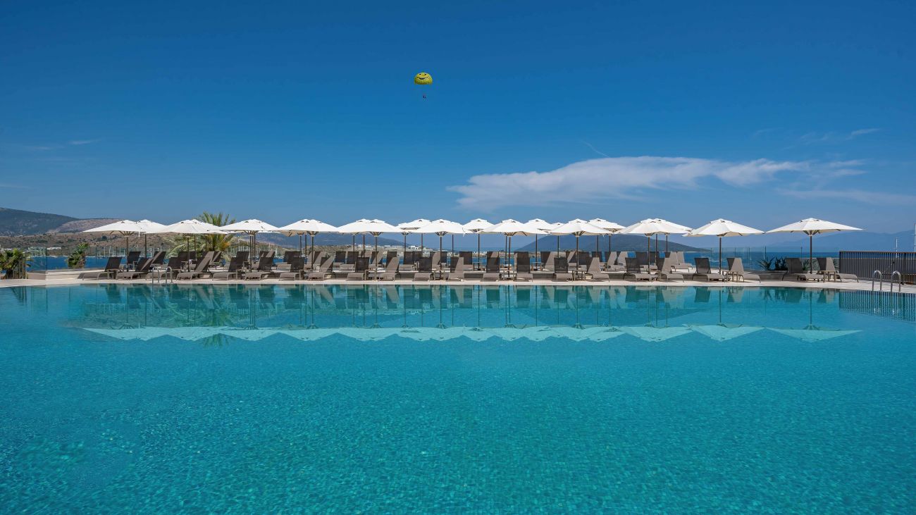 Хотелът се намира на 45 км от летище Милас, на 3 км от центъра на Бодрум, в района на Гюмбет. Изцяло реновиран през 2022 г. Разположен върху площ от 38,000 m².