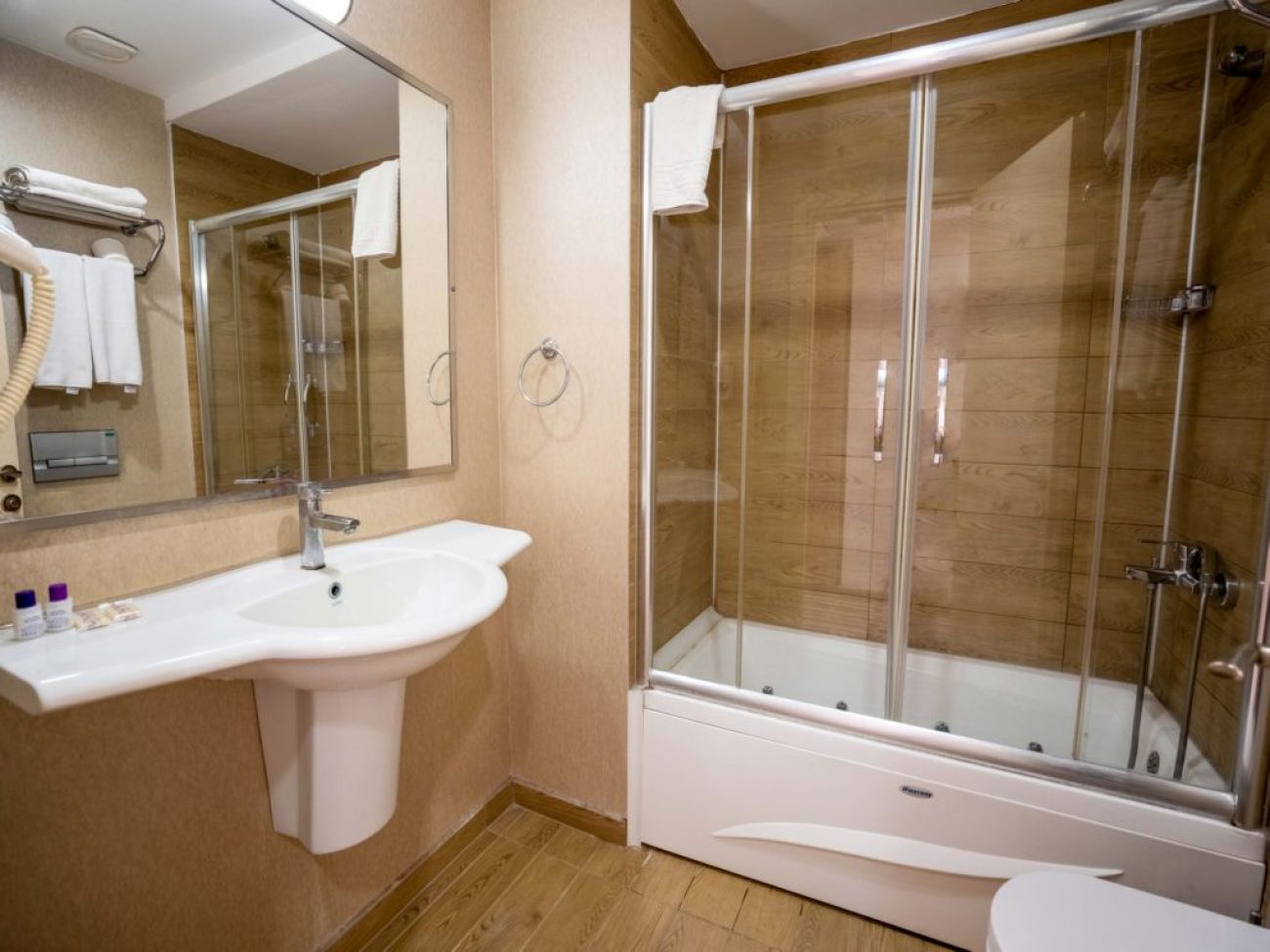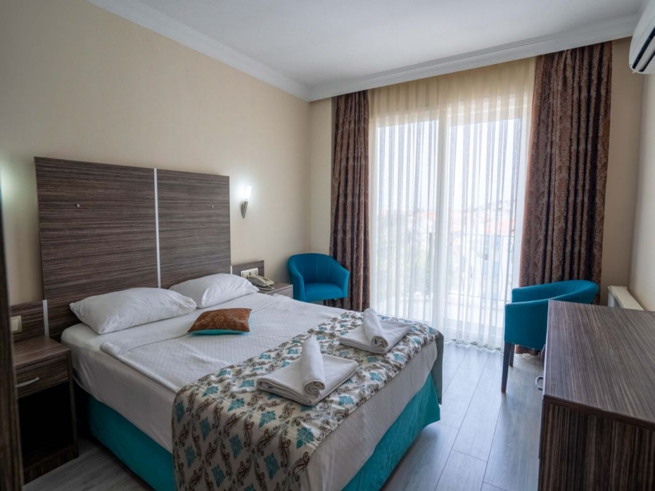 Хотелът разполага с 127 стаи/спалня и единично легло/. Всички стаи са оборудвани с климатик, телевизор, телефон, баня с душ или вана, сешоар, мини бар, сейф, балкон или тераса. Почистване на стаите - всеки ден, смяна на спалното бельо и кърпите - 2 пъти в седмицата.