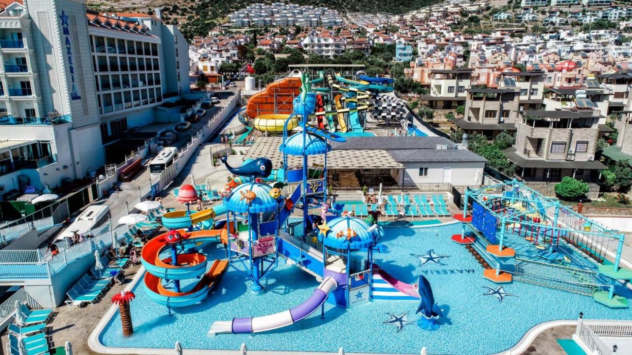 За децата: Детско меню, 3 детски басейна, водни пързалки, детска площадка, мини клуб (4-12г), мини диско, детска анимация, детска количка (с депозит/под наем).