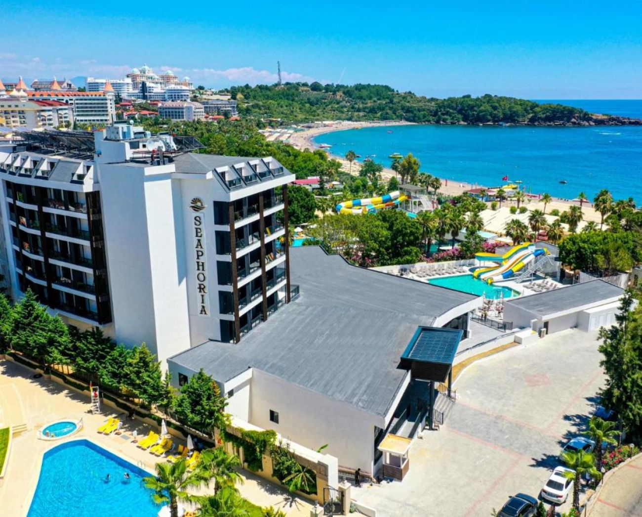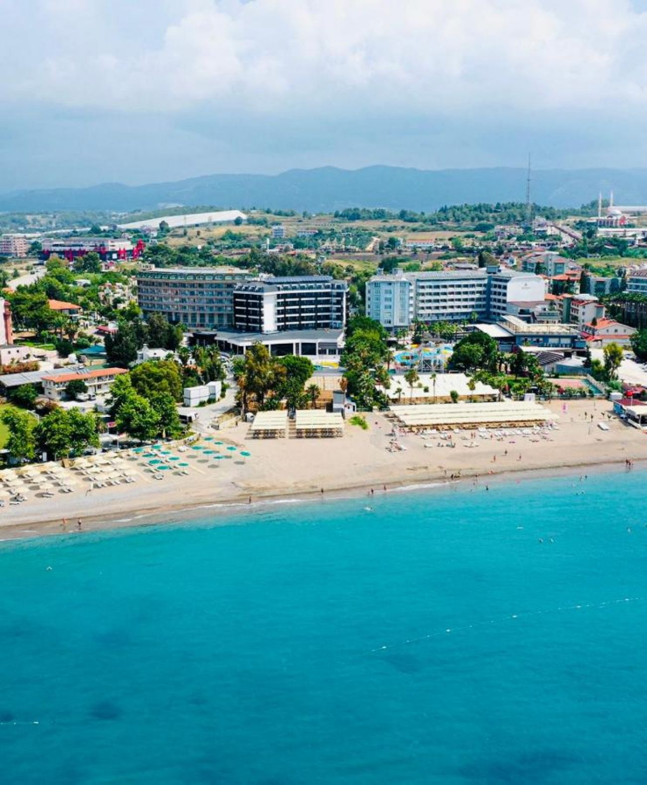 Намира се на 92 км от летище Анталия, на 100 км от центъра на Анталия, на 32 км от центъра на Алания, на 100м от брега на морето, на обща площ от 6 250 м2. Реновиран 2023 г.