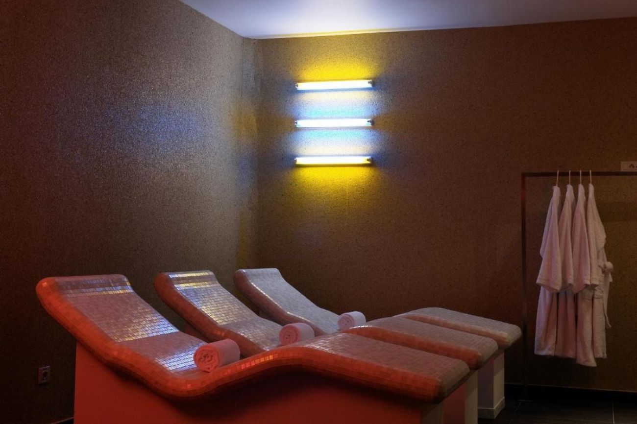 Спа център и фитнес (срещу заплащане) в сградата на хотел Aressana.
