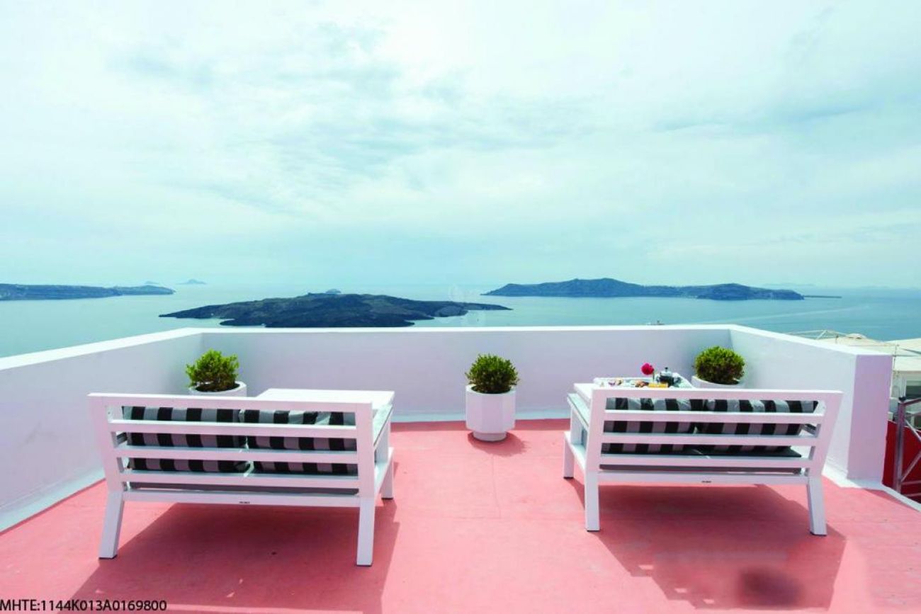 Стандартните стаи са с гледка към площада на Фира.