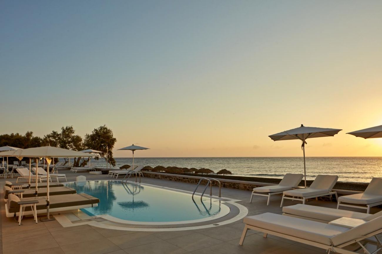 Costa Grand Resort & Spa се намира в Камари, на собствения си плаж с черен пясък. Летище Санторини (Тѝра) се намира на 4 км.
