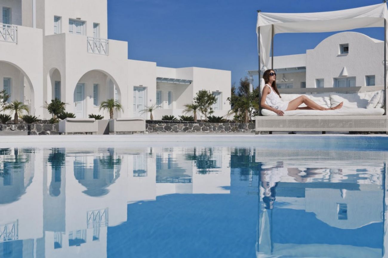 Хотелът се намира на 500 м. от центъра на столицата Фира, на 12 км. от Камари, на 14 км. от Периса, на 7 км. от брега на морето. Луксозен хотел, построен в изцяло традиционен цикладски стил. Комплекс El Greco Resort, прилича на малко селище с бели къщи. Разположен е на голяма територия и е идеален избор за луксозна семейна почивка. Автобусна спирка на 450 м. от хотела.
