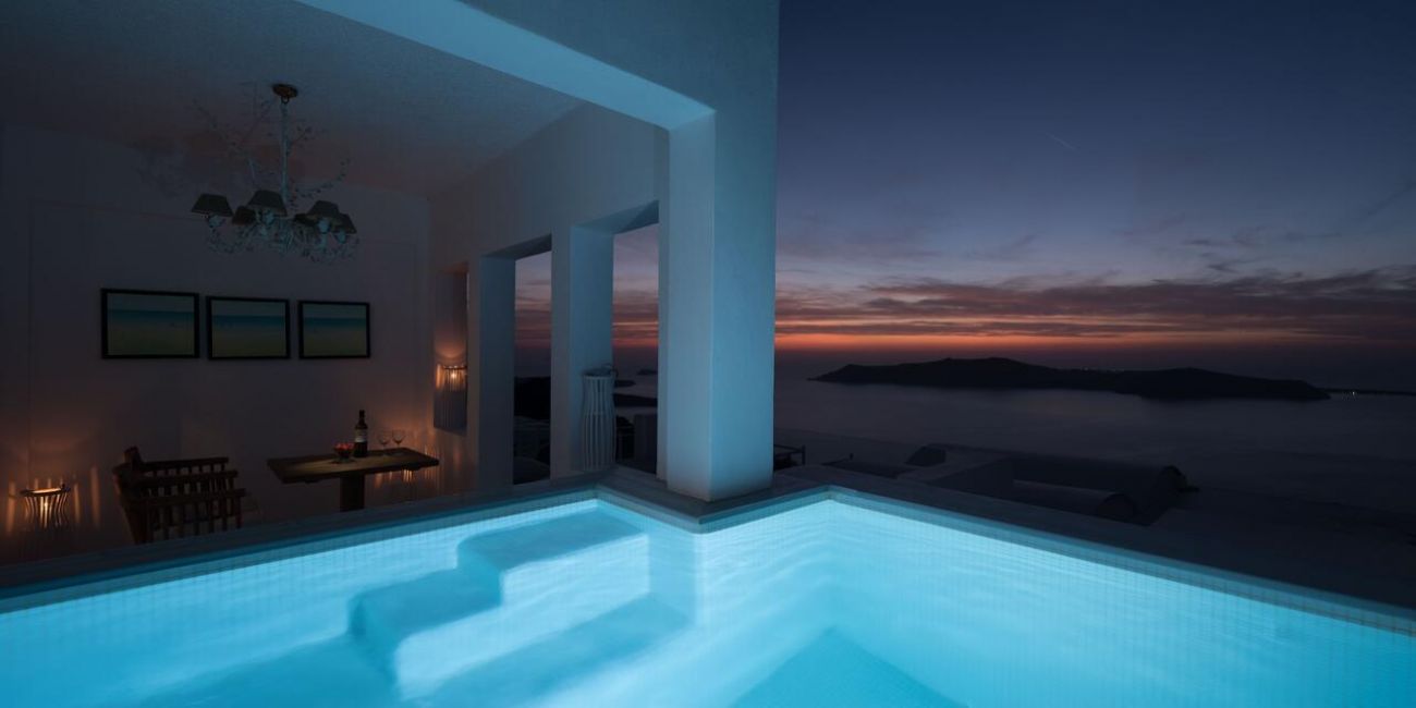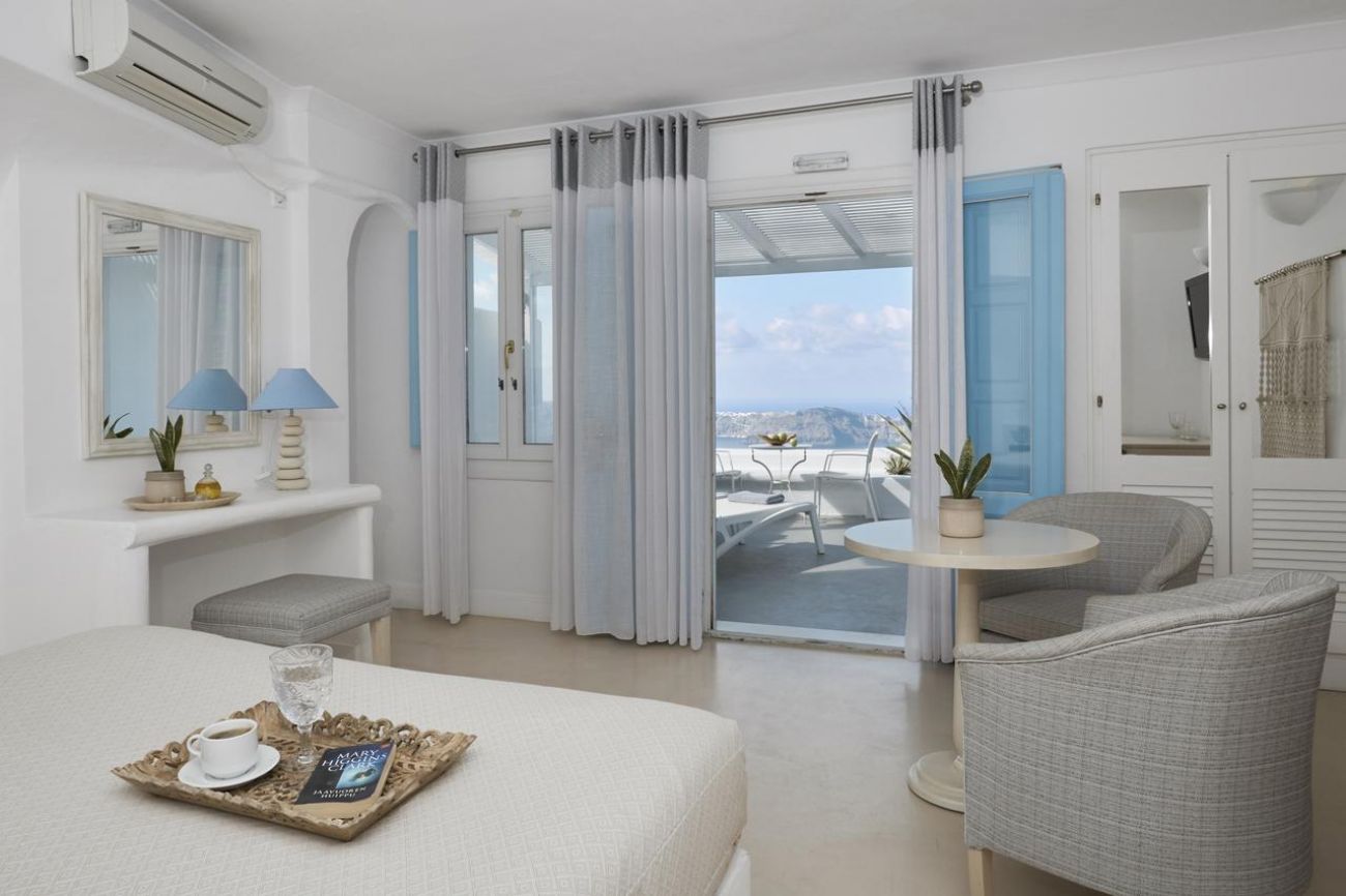 Хотелът се намира в Имеровигли и предоставя уникална гледка към калдерата на Санторини. Столицата на острова Фира е само на 4 км, летището на Санторини - на 8 км, a централното пристанище Атиниос - на 12 км.