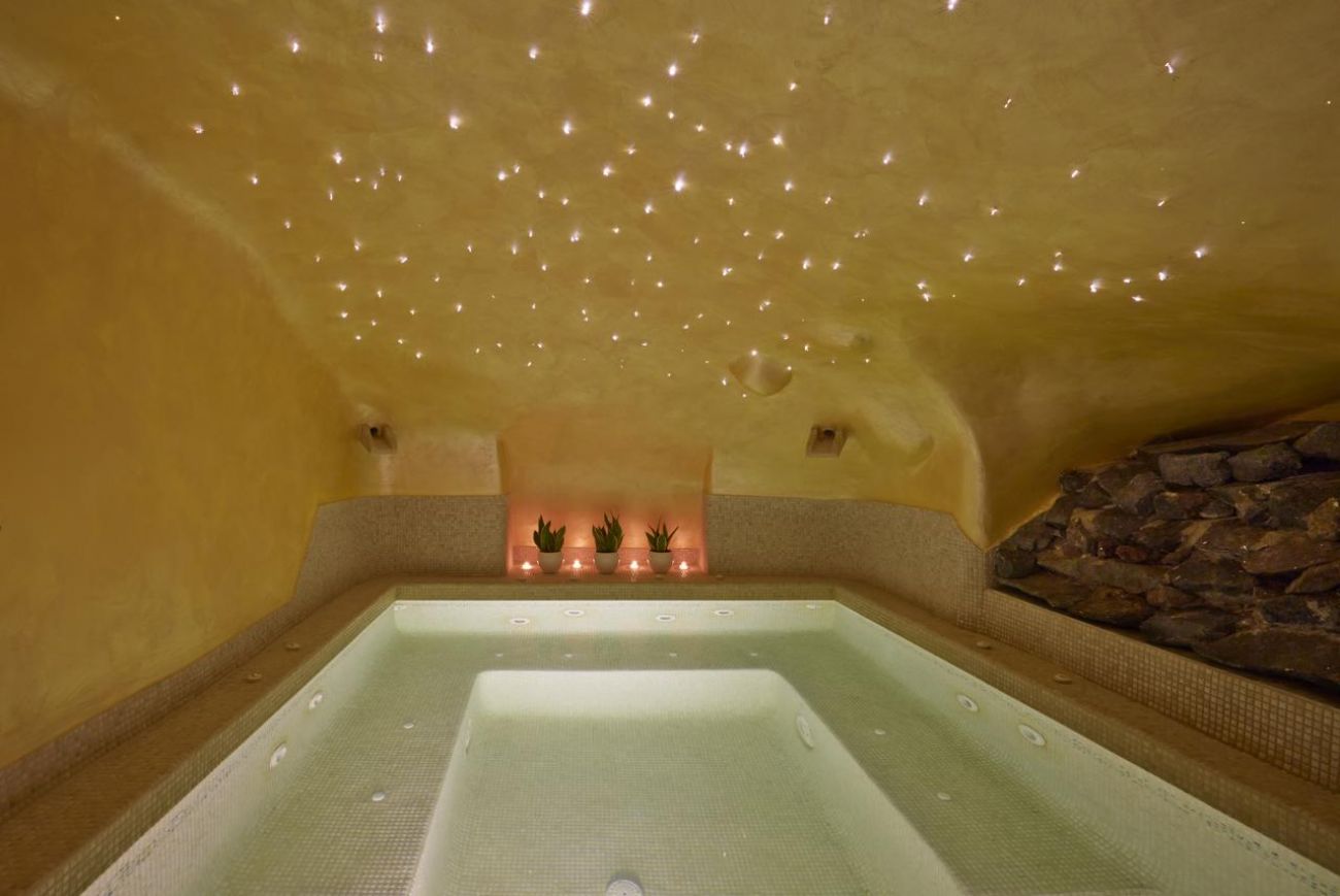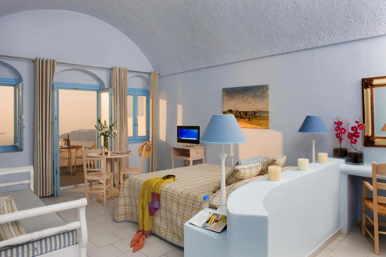 Хотелът разполага с основен ресторант, бар, плувен басейн с гледка към Калдерата, конферентна зала, румсървис.