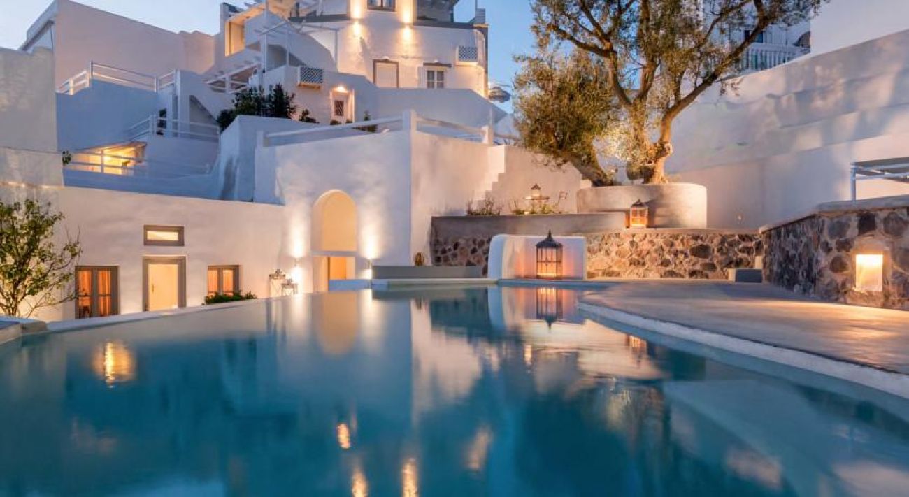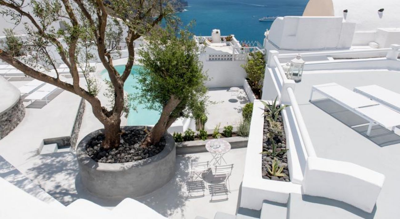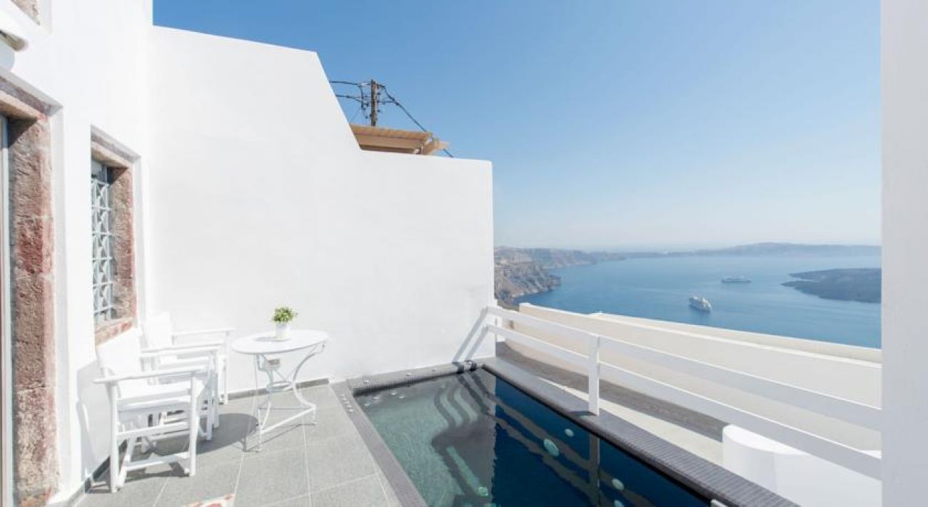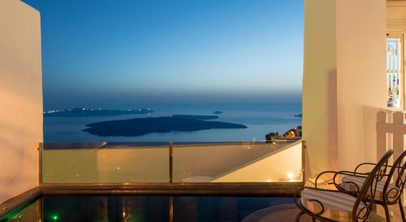 От хотела се разкрива прекрасна гледка към Калдерата на Санторини. Хотелът се намира в селцето Имеровиги на 2 км. от градовете Фира и Ойа.