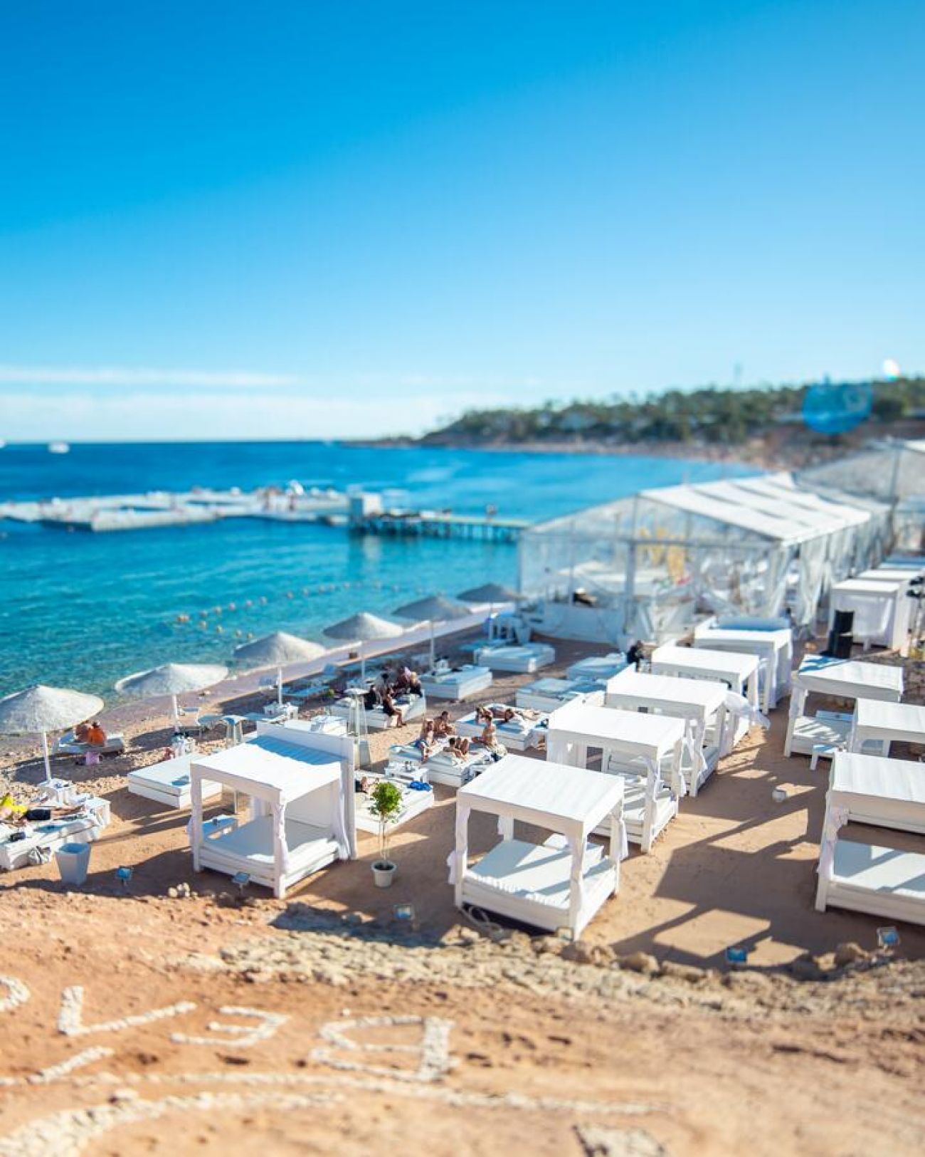 Собствен, пясъчен, 2 кея. Чадъри, шезлонги, матраци и плажни кърпи на плажа и при басейна - безплатно.