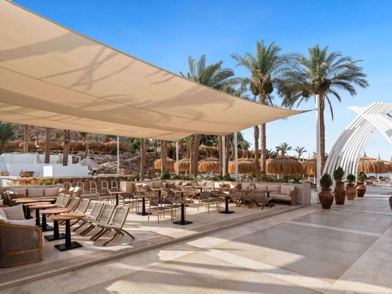 Плаж: Частният пясъчен плаж се намира на 1,2 км от хотела, което го прави трета брегова линия. Чадъри, шезлонги и плажни кърпи се предоставят безплатно.