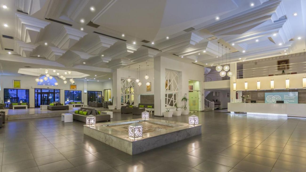 Намира се е на 25 км от летище Зарзис, на 5 км от Мидун, на 16 км от Хумт Сук, в близост до голф игрището на Джерба, на 200 метра от брега на морето, с директен достъп до най-добрия частен пясъчен плаж на острова, през зелените пясъчни дюни и палмите. Построен 1993 г, на обща площ от 110 000 м2. Реновиран 2015 г.