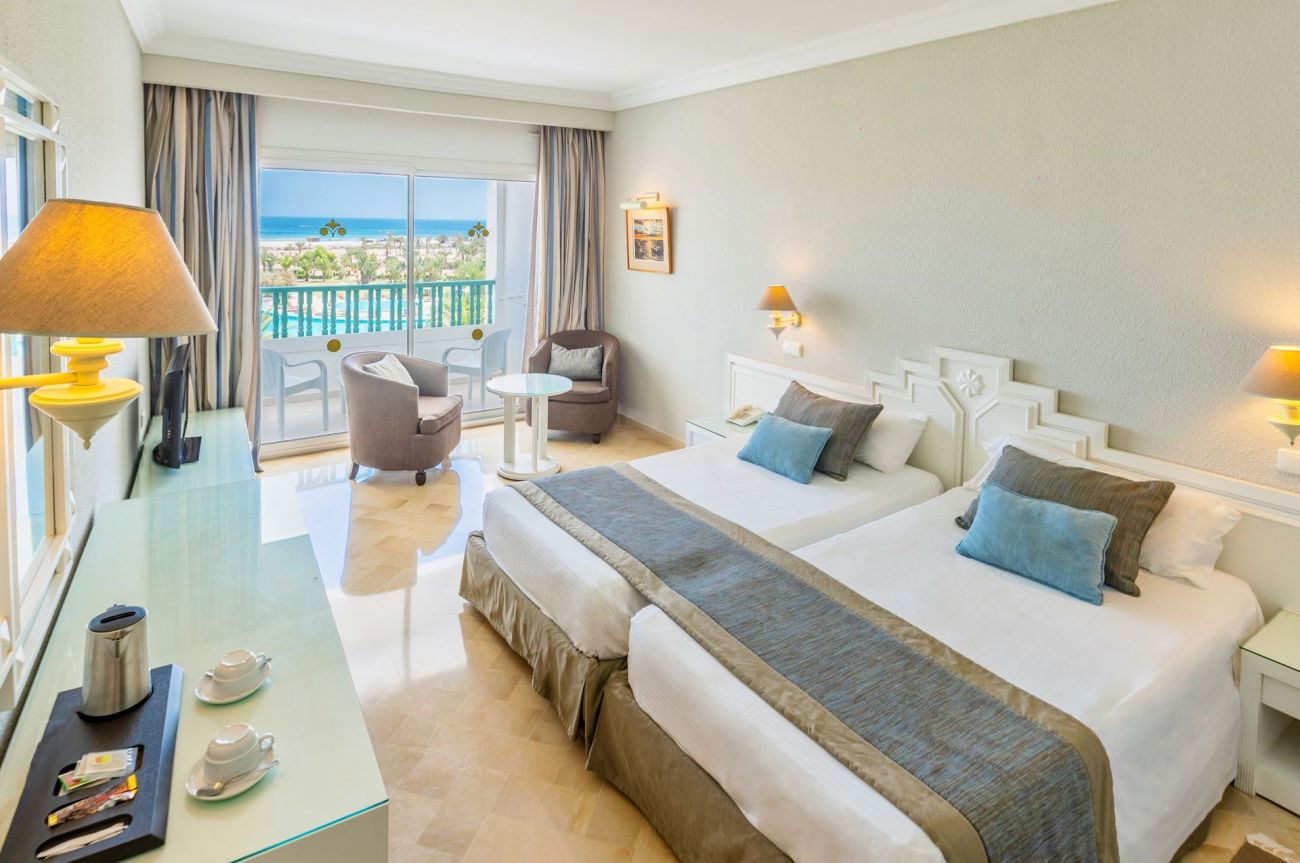 Основен ресторант Guellela, 3 ресторанта a la carte (Тунизийска, Средиземноморска, Италианска кухня с доплащане. Гостите могат да вечерят веднъж безплатно по време на престоя си във всеки ресторант, необходима е предварителна резервация.), плажен ресторант Maya (срещу заплащане), лоби бар Le Mascara, пиано бар, плажен бар (01.05 -31.10), бар басейн Barbecue, мавританско кафеен Maure (наргиле-безплатно), открит басейн, закрит басейн с джакузи, 24-часова рецепция, конферентна зала, обмяна на валута, СПА център.